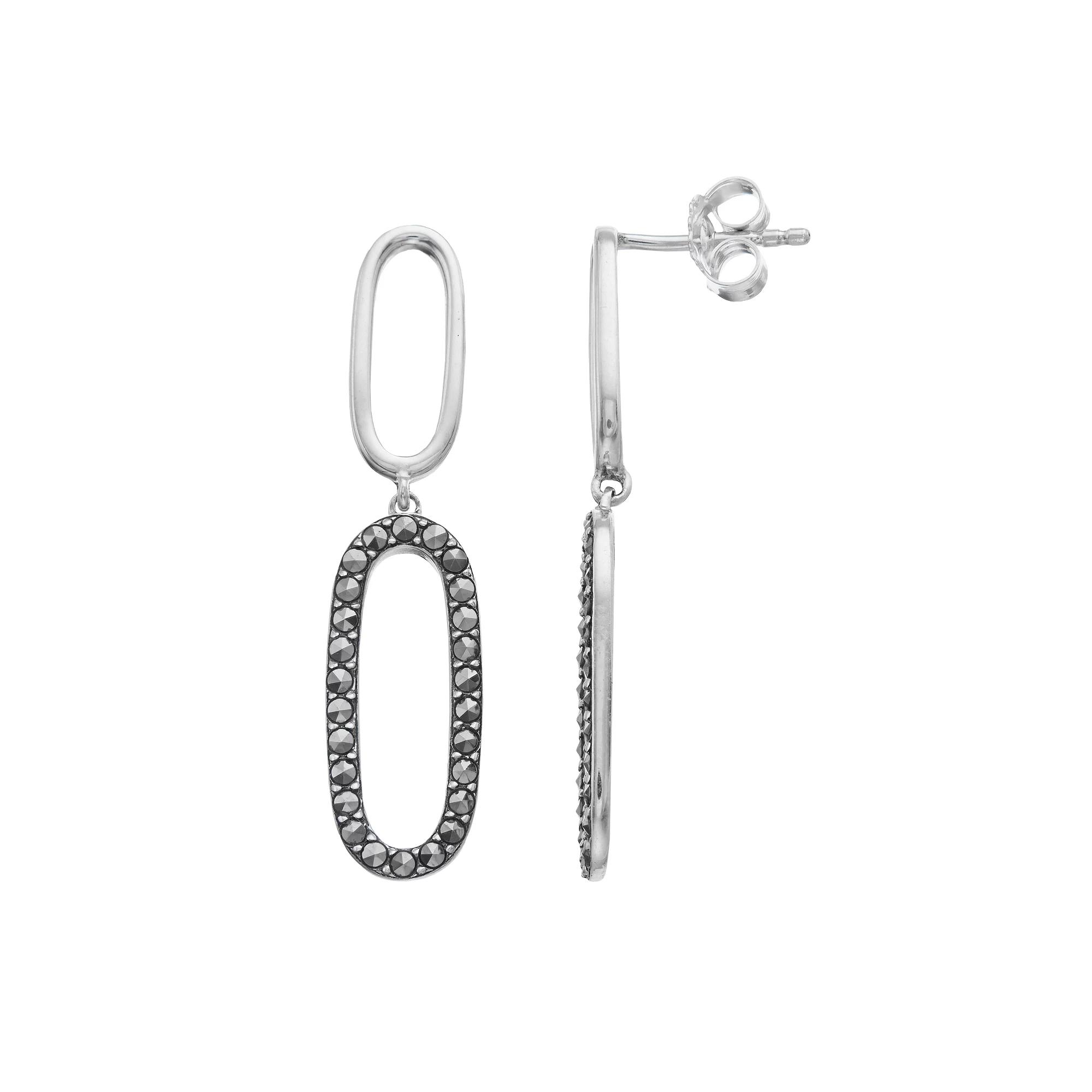 Add these unique Lavish by TJM marcasite paperclip dangle earrings to your collection. Click on this JEWELRY & WATCHES GUIDE to learn about fit, styles, materials and more! Add these unique Lavish by TJM marcasite paperclip dangle earrings to your collection. Click on this JEWELRY & WATCHES GUIDE to learn about fit, styles, materials and more! FEATURES Length: 36.95 mm x 8.35 mm Backings: post Metal: sterling silver Plating: rhodium Finish: oxidized Packaging: boxed Nickel freeSTONE DETAILS Stone type: marcasite Total weight: 1/2 ct. Center stone weight: 1/2 ct. Center stone size: 1.30 mm Shape: round Setting: pave Gemstones may have been treated to enhance their appearance. Special care may be required. Please visit our Gemstone Treatment & Special Care Guide for more information. Color: Grey. Gender: female. Age Group: adult.