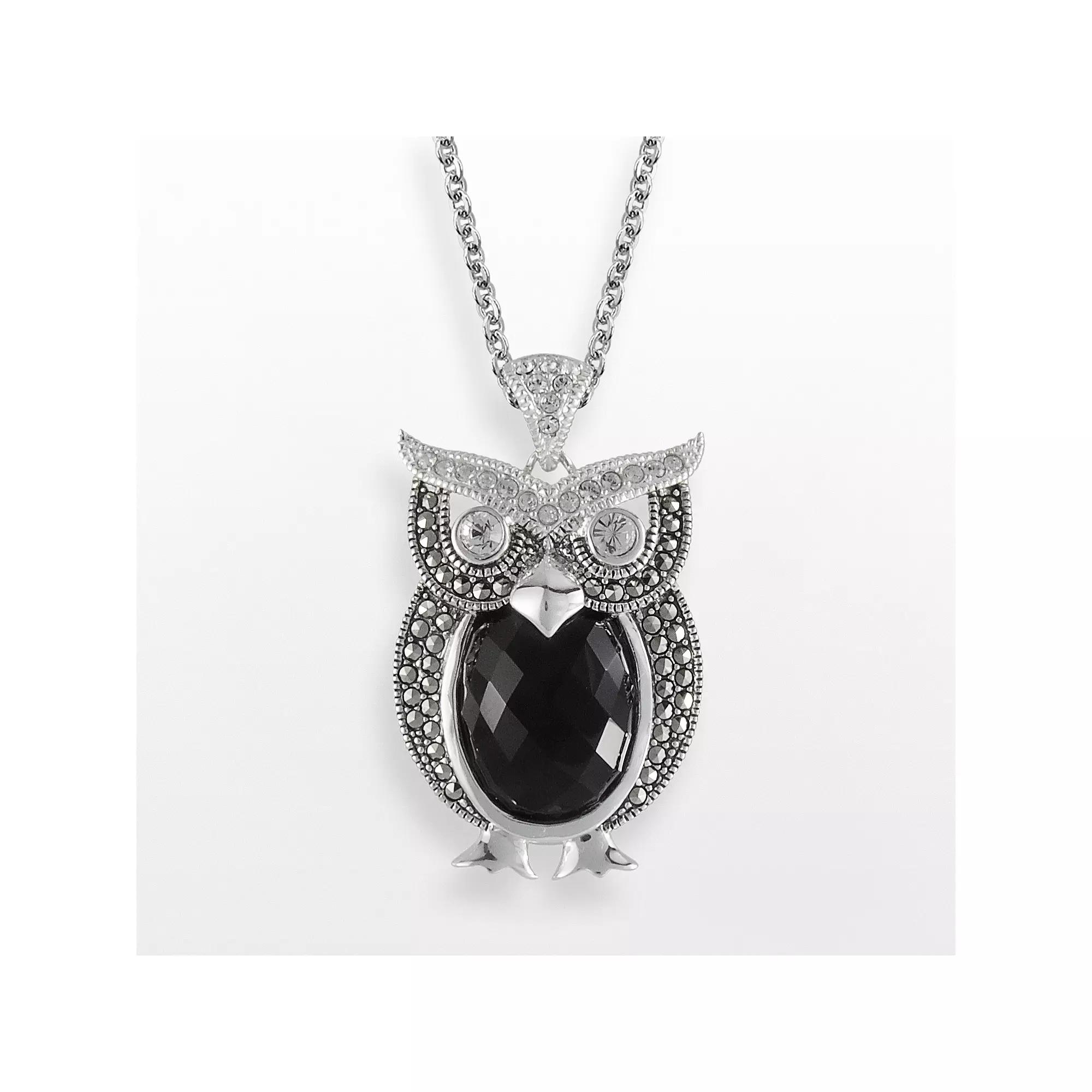 Lavish by TJM Sterling Silver Onyx & Crystal Owl Pendant, Women's, Size: 18", Black