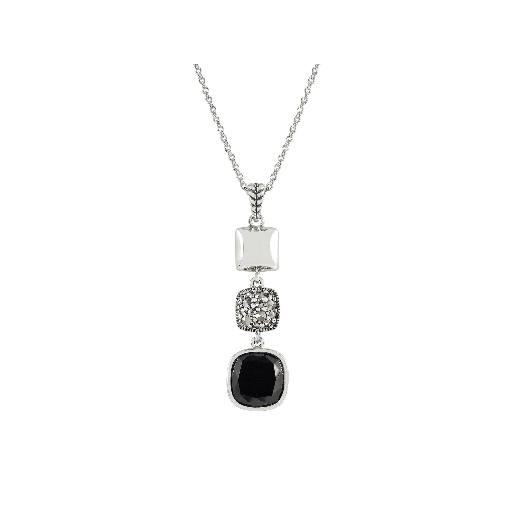 You'll love the beautiful and elegant style of this Lavish by TJM Sterling Silver Onyx & Marcasite Cushion Triple Drop Pendant Necklace. Click on this JEWELRY & WATCHES GUIDE to learn about fit, styles, materials and more! You'll love the beautiful and elegant style of this Lavish by TJM Sterling Silver Onyx & Marcasite Cushion Triple Drop Pendant Necklace. Click on this JEWELRY & WATCHES GUIDE to learn about fit, styles, materials and more! FEATURES Pendant dimensions: 1.59 in. x 0.44 in. Chain length: 18 in. Chain type: cable Clasp: lobster-claw Metal: sterling silver Plating: silver tone Finish: oxidized Packaging: boxed Nickel free ImportedSTONE DETAILS Stone type: onyx, marcasite Shape: cushion cut Setting: prong Gemstones may have been treated to enhance their appearance. Special care may be required. Please visit our Gemstone Treatment & Special Care Guide for more information. Size: 18". Gender: female. Age Group: adult.