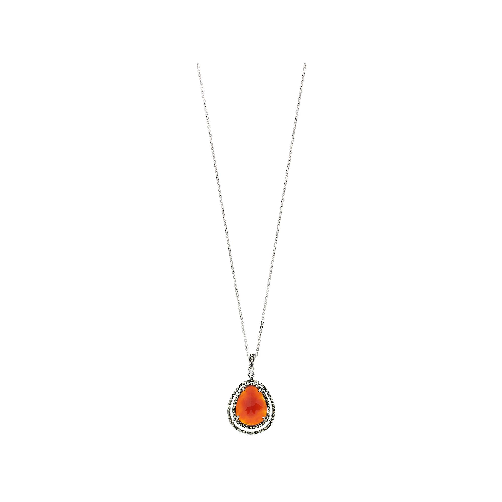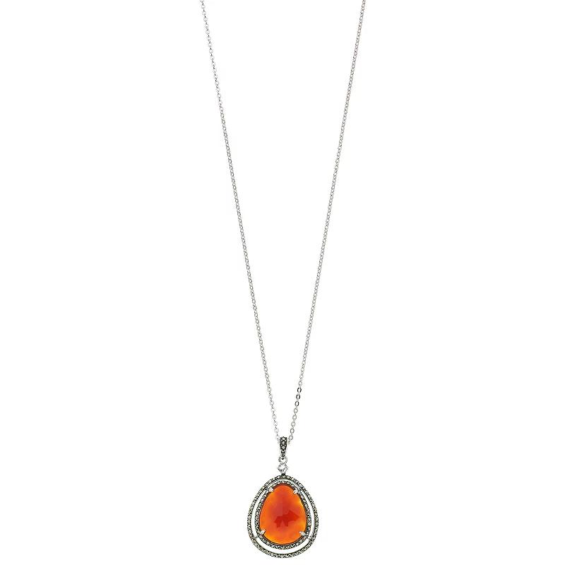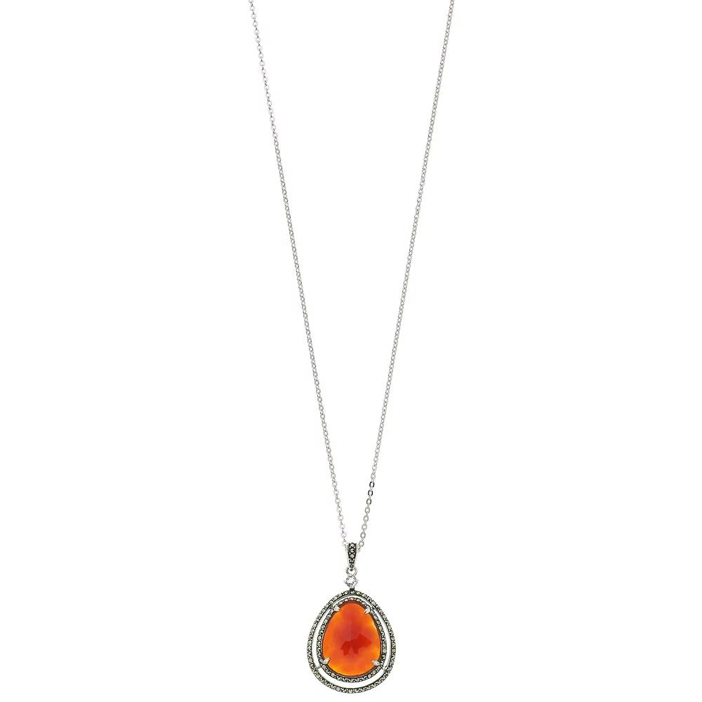 You'll love the impressive design of this pendant necklace from Lavish by TJM. You'll love the impressive design of this pendant necklace from Lavish by TJM. Clasp: lobster-claw Necklace length: 18" Pendant size: 1.60" x 0.95" Chain type: rolo Center stone size: 20 mm x 16 mm Packaging: boxed Additional details: nickel free Plating: Rhodium Finish: Polished Base material: Sterling Silver Made with SWAROVSKI GEMSTONES STONE DETAILS Type: Red Agate, White Topaz, Swarovski Marcasite Setting: Prong Shape: Pear Color: Red Gemstones may have been treated to enhance their appearance. Special care may be required. Gender: female. Age Group: adult.