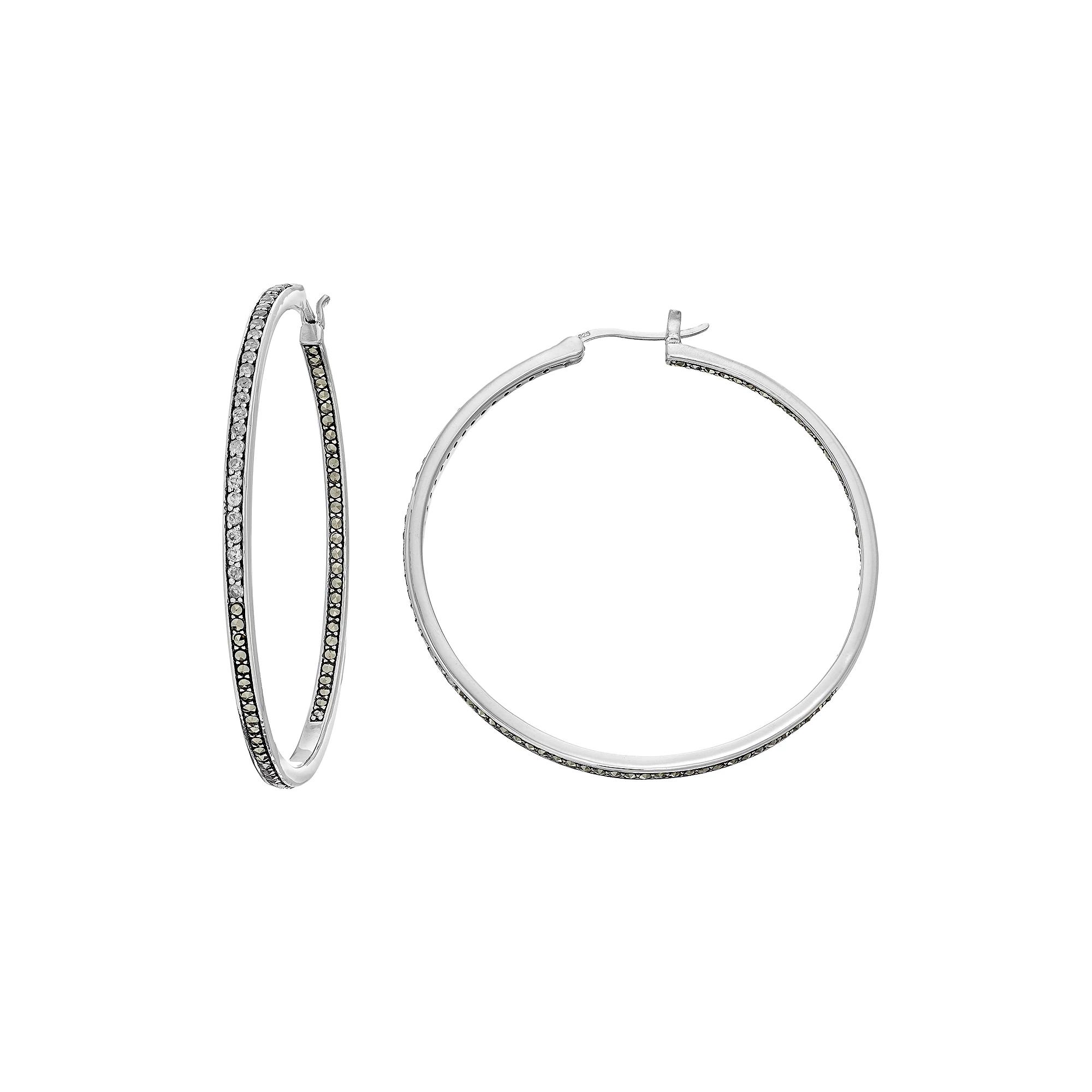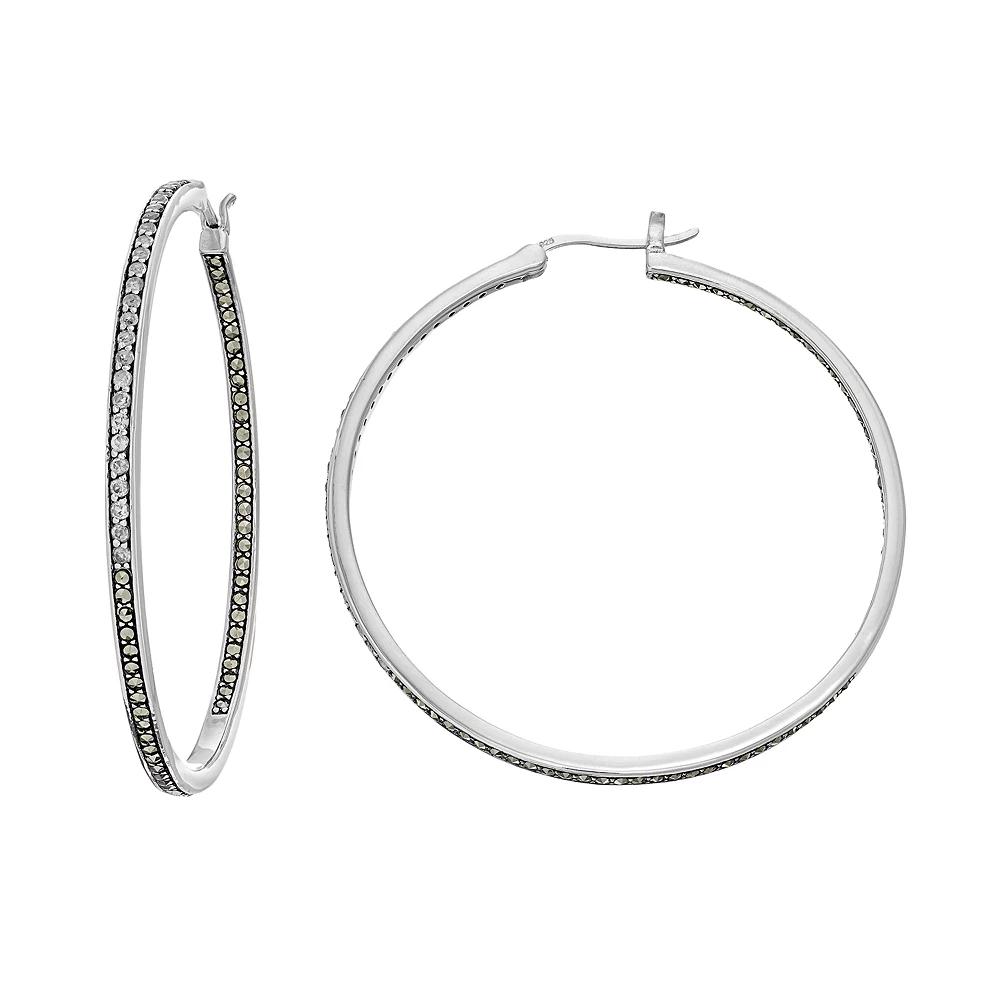 Featuring a row of white topaz stones and marcasite accents, these Lavish by TJM hoop earrings offer a boldly beautiful look.EARRING DETAILSLength: 1.8 in. Backings: click-itMetal: sterling silverSTONE DETAILSStone type: genuine white topazTotal weight: 3/8 ct.Shape: roundSetting: bezel Size: One Size. Color: Grey. Gender: female. Age Group: adult.