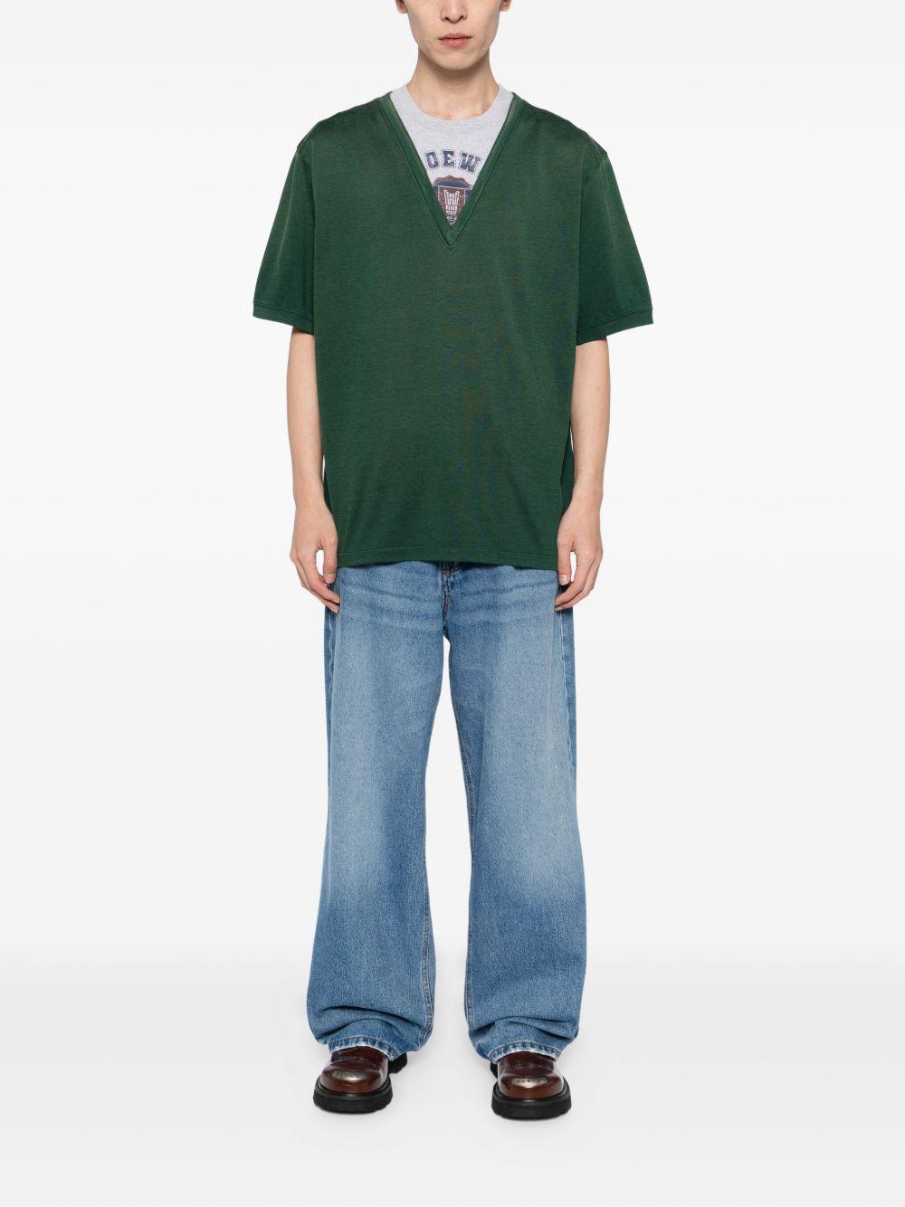 LOEWE layered T-shirt | Green | green | crew neck | short sleeves | straight hem | logo-embossed patch to the rear | layered design | Cotton/Viscose | T-Shirts | T-Shirts & Vests | Clothing | Men