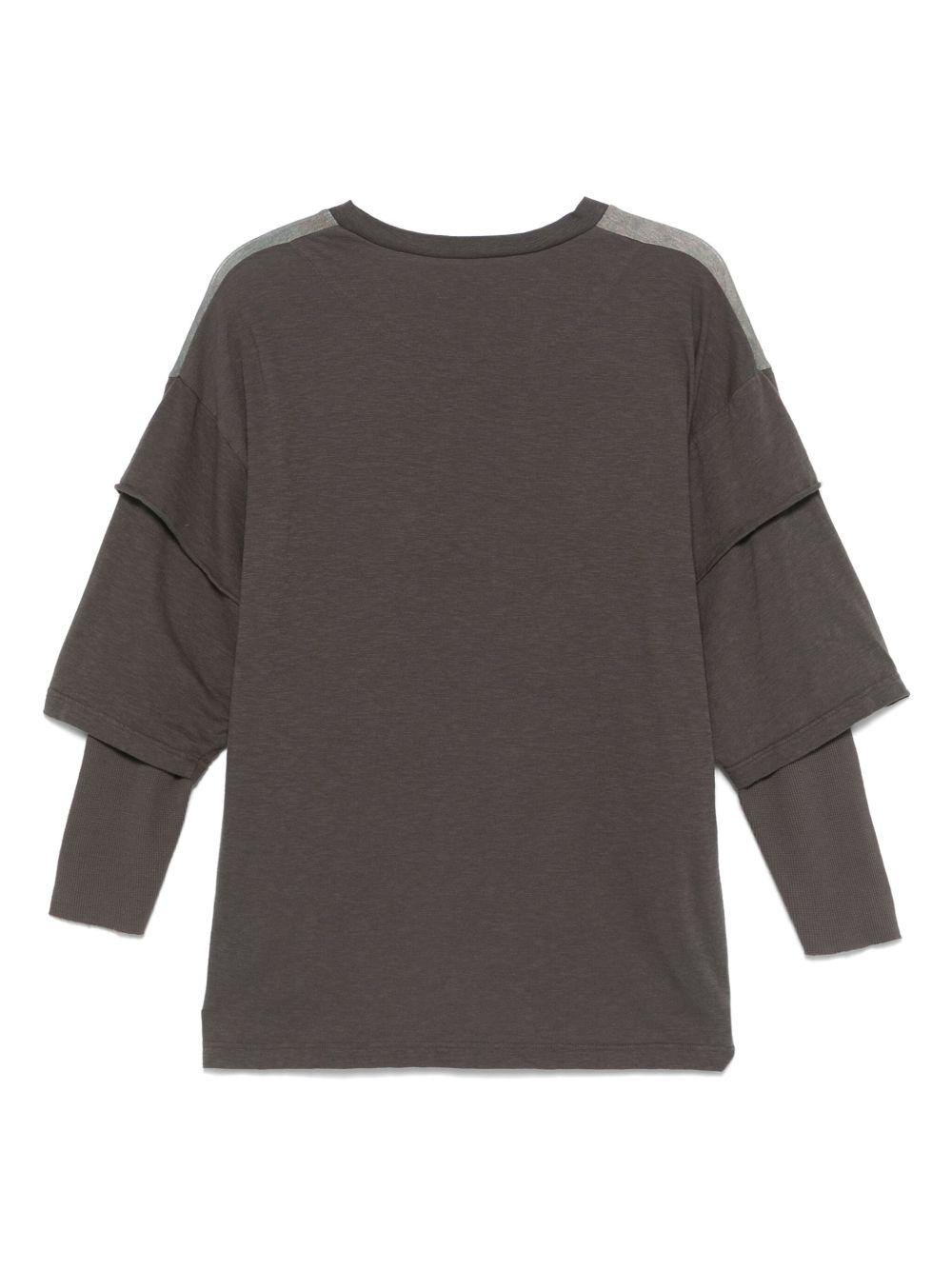 Undercover layered T-shirt | Grey | charcoal grey | crew neck | drop shoulder | two side button-fastening pockets | abstract pattern print | Cotton | T-Shirts | T-Shirts & Vests | Clothing | Men