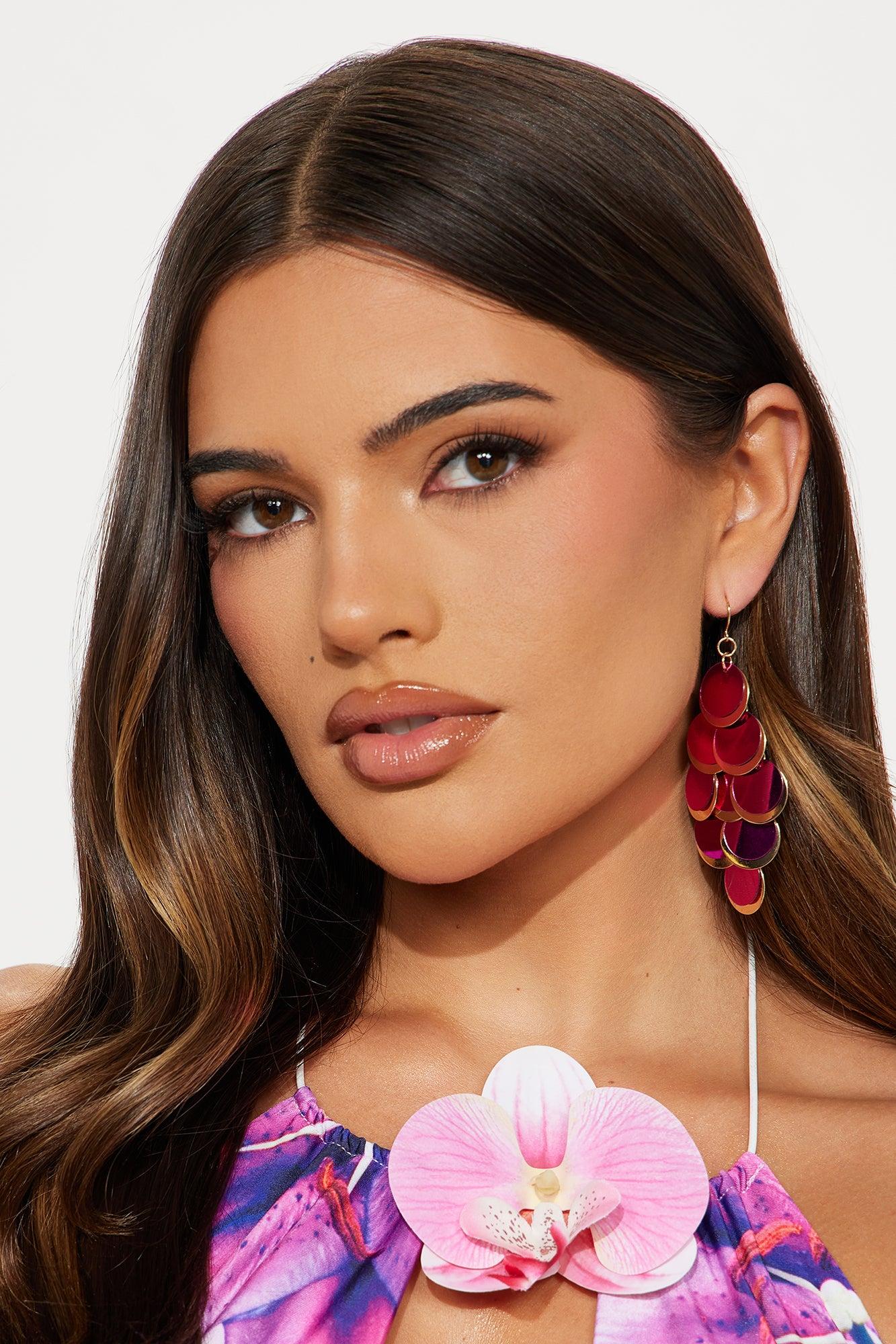 Layered Waterfall Drop Earrings - Fuchsia/combo Female