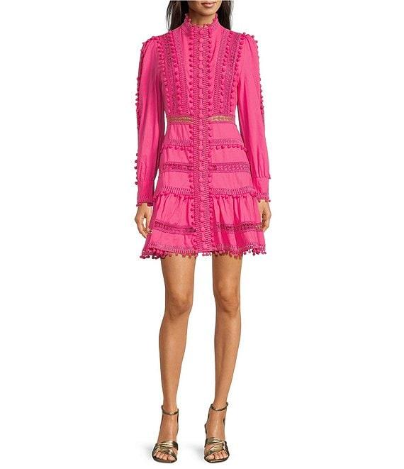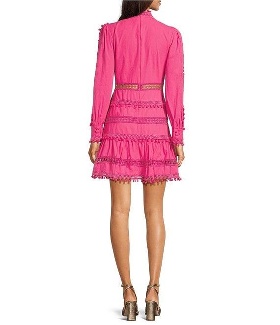 Layered With Love Carla Woven Mock Neck Long Sleeves Ruffle Tiered Hem Fit & Flare Mini Dress