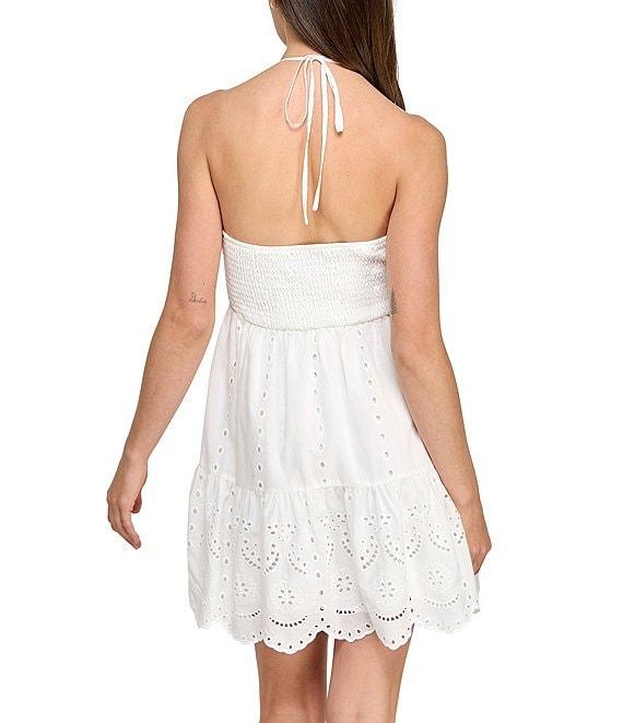 Layered With Love Lil Daisy Halter V-Neck Embroidered Eyelet Fit And Flare Mini Dress