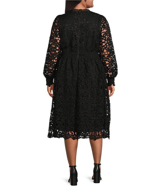 Layered With Love Plus Size Lace Crew Neck Long Sleeve Sheath Midi Dress