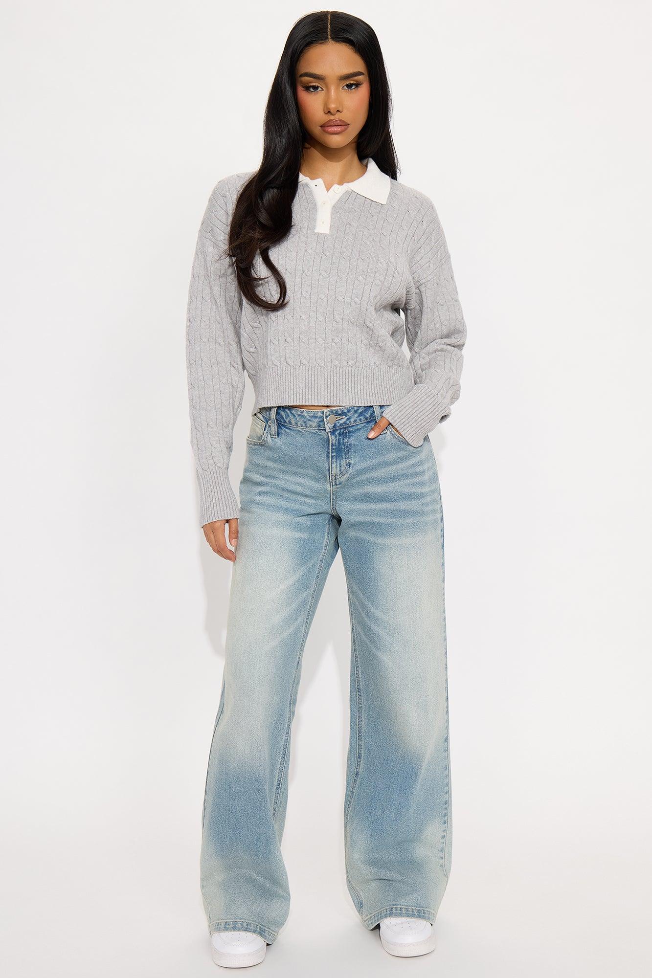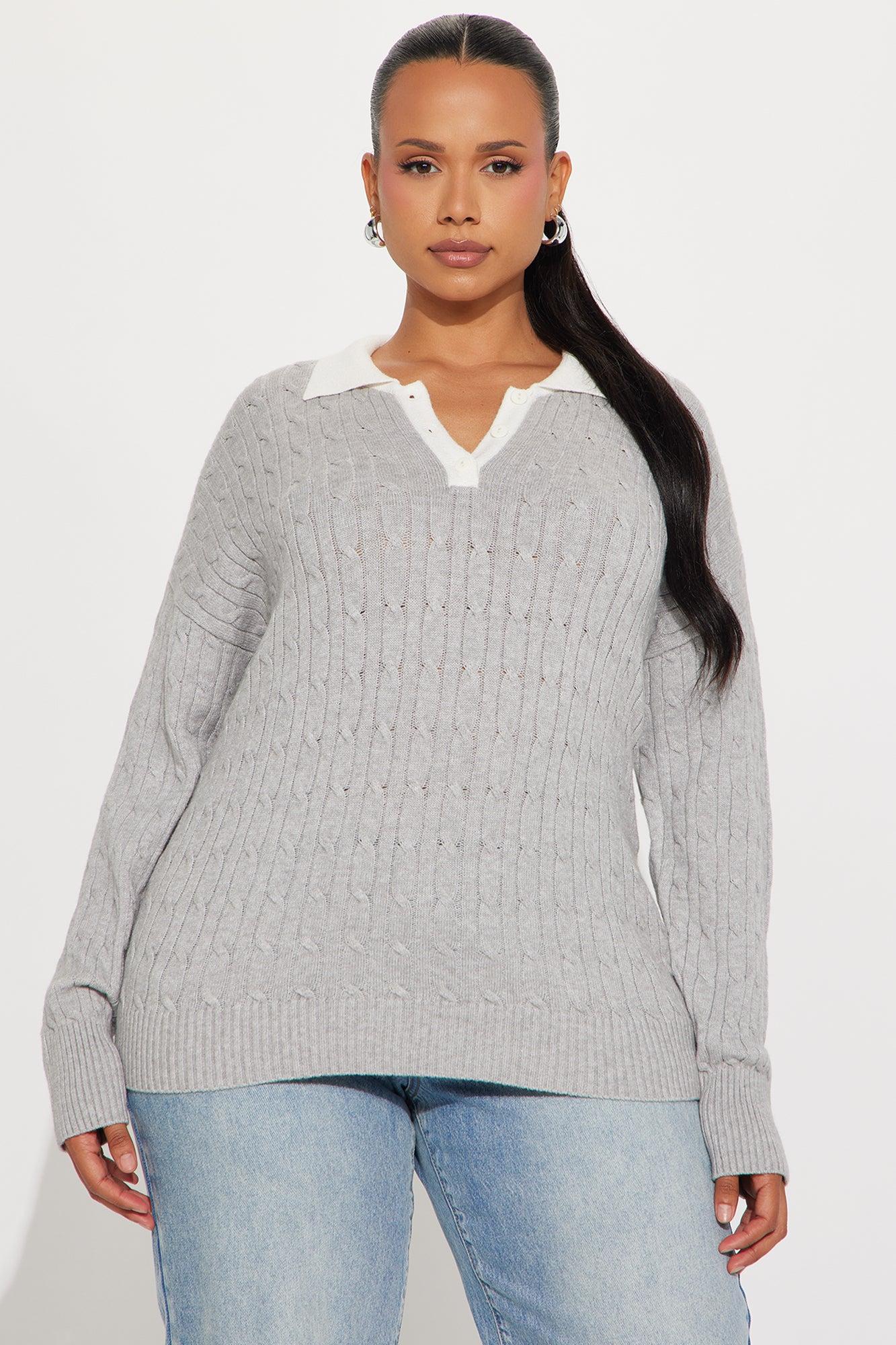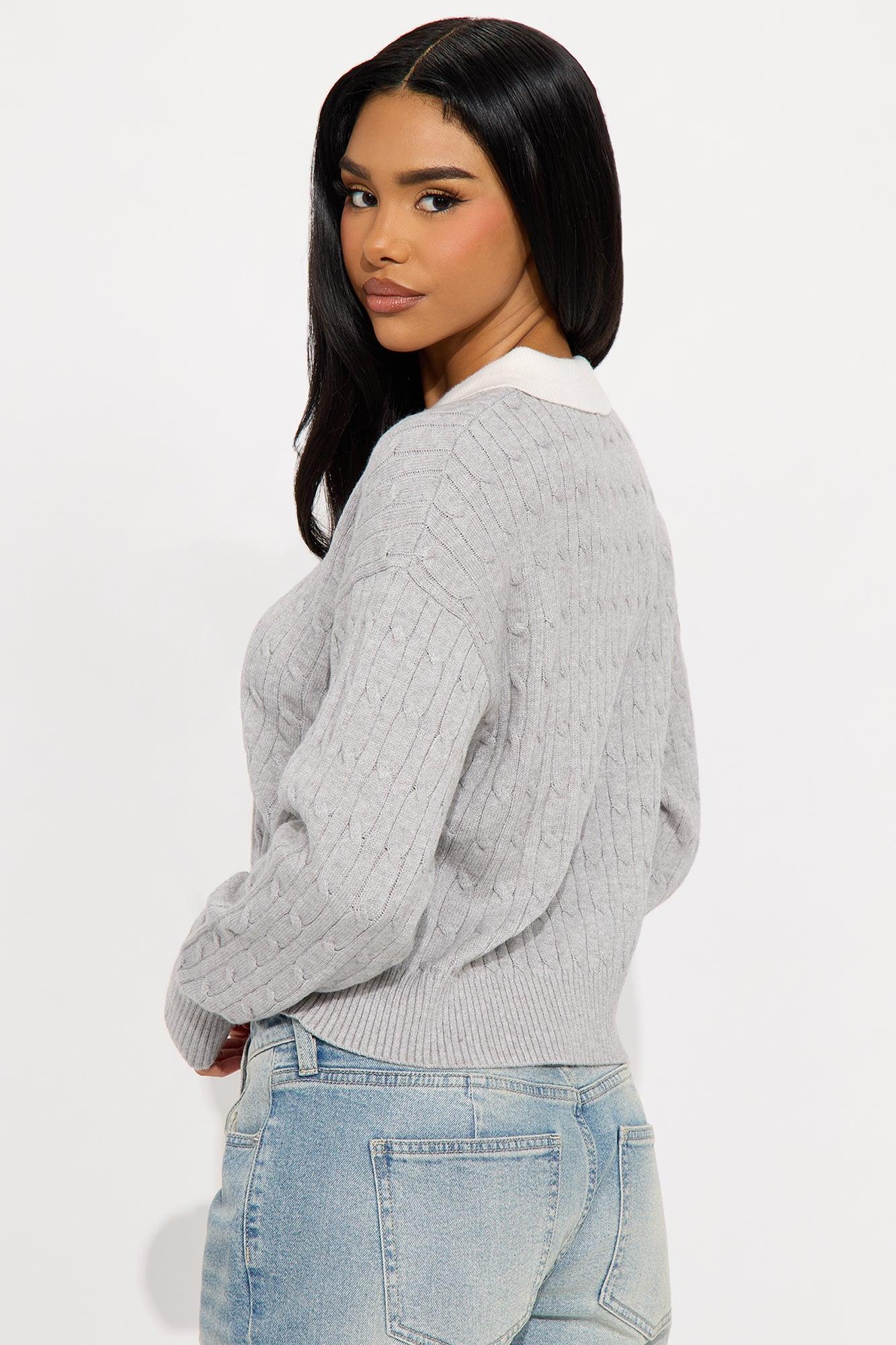 Layla Cable Knit Pullover Polo Sweater - Grey/combo Female