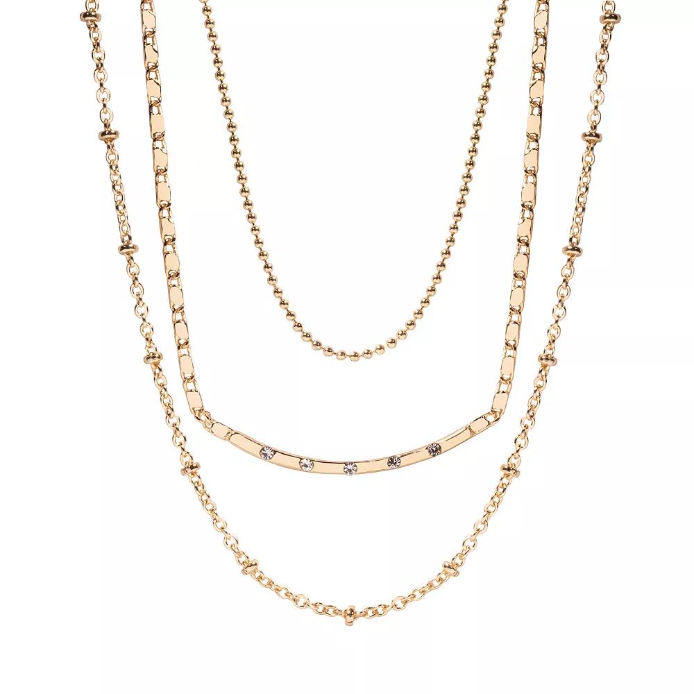 Finish off your outfit with this LC Lauren Conrad 3 row chain necklace. Click on this JEWELRY & WATCHES GUIDE to learn about fit, styles, materials and more! Finish off your outfit with this LC Lauren Conrad 3 row chain necklace. Click on this JEWELRY & WATCHES GUIDE to learn about fit, styles, materials and more! FEATURES Chain length: 16-18 in. Clasp: lobster-claw Nickel free Metal: brass and zinc Material: glass Plating: gold tone Finish: polished Size: One Size. Gender: female. Age Group: adult.