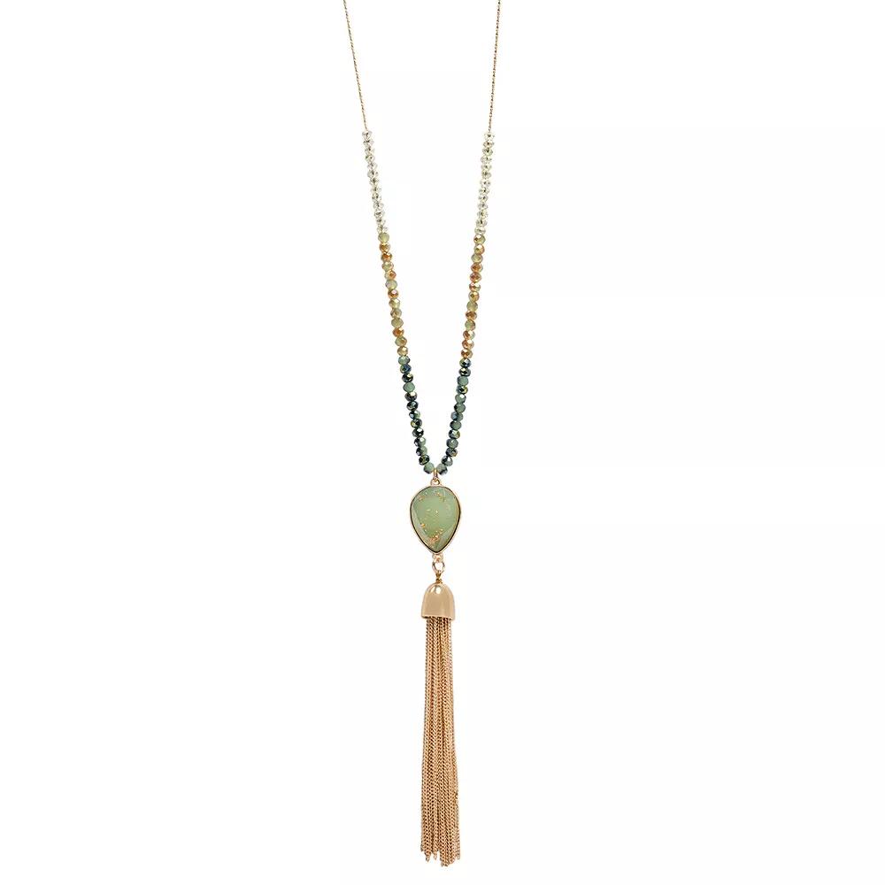 Make a chic style choice when you don this fashionable tassel pendant from LC Lauren Conrad.NECKLACE DETAILS Pendant length: 4.7 in. Length: 32 in. with 3-in. extender Clasp: lobster-claw Metal: zinc, brass Plating: gold tone Additional details: nickel free Not appropriate for children 14 years old and younger. Size: One Size. Color: Turq/Aqua. Gender: female. Age Group: adult.