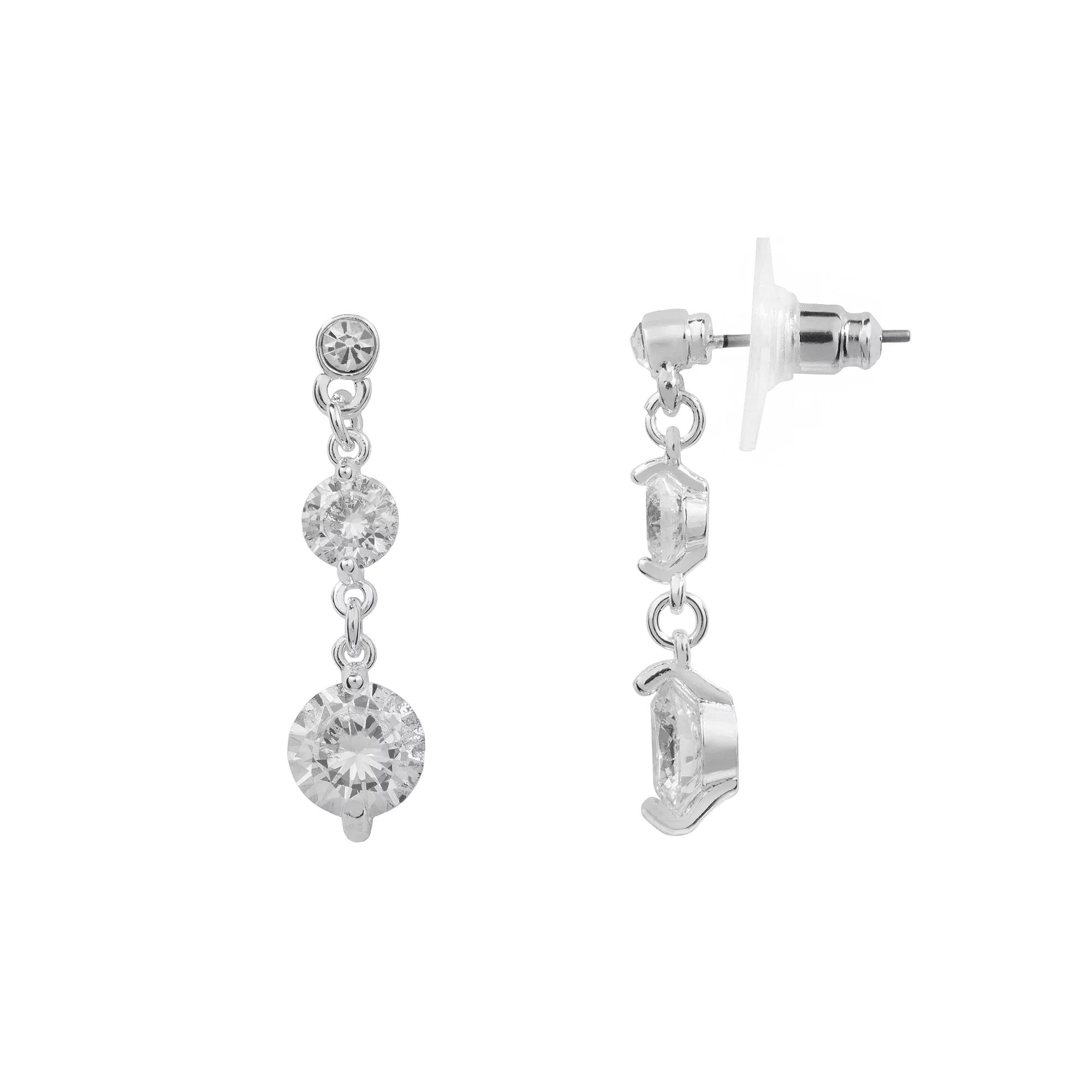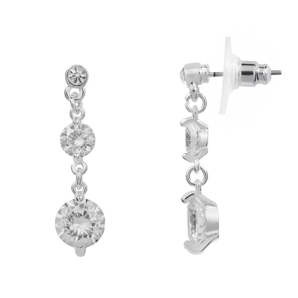 These stunning cubic zirconia nickel free tri-stone round drop earrings from LC Lauren Conrad are the perfect way to finish any outfit. Metal: brass Material: glass Backings: post Finish: polished Stone: cubic zirconia Additional details: nickel free Length: 1.674 in. Not appropriate for children 14 years old and younger. Size: One Size. Color: Silver. Gender: female. Age Group: adult.