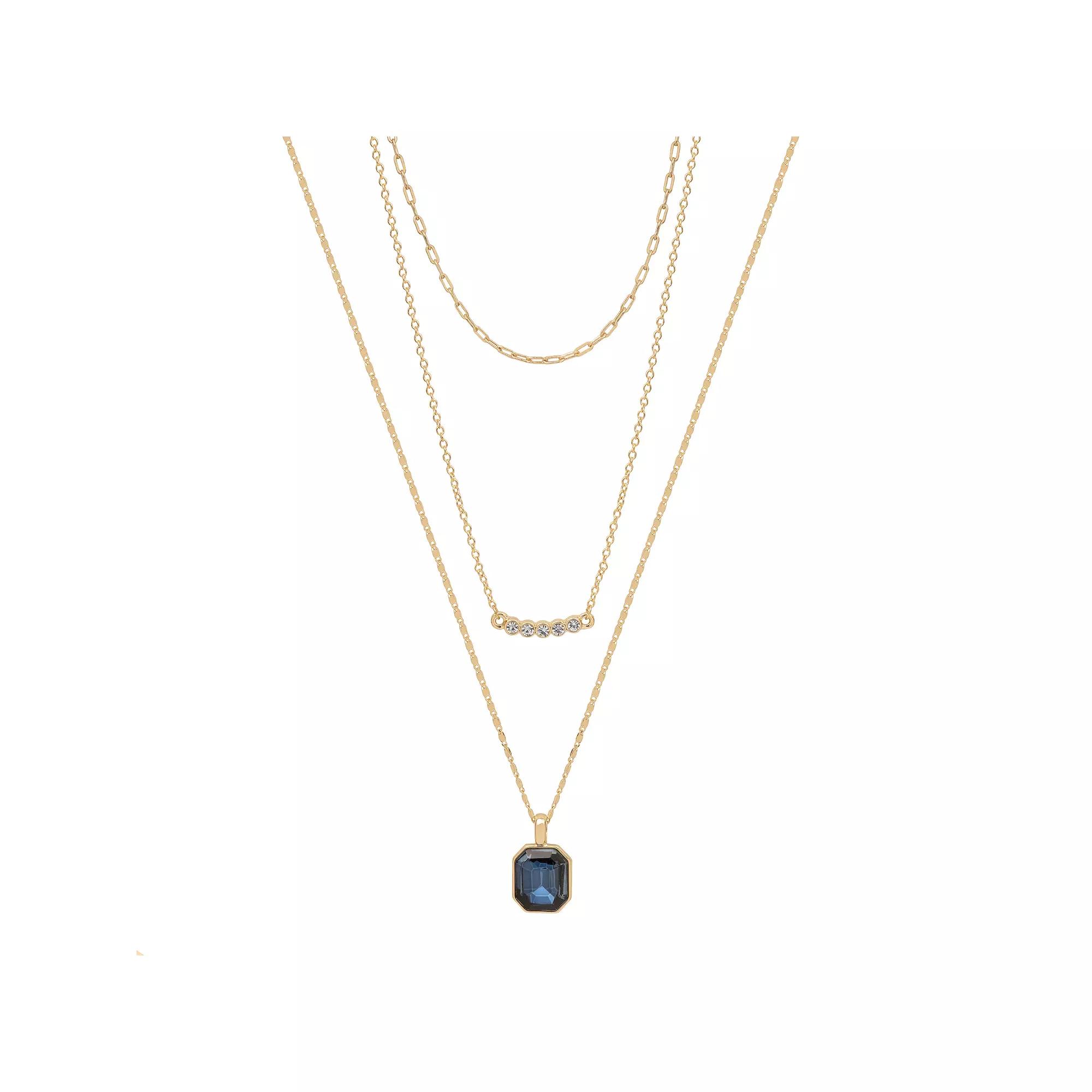 Accessorize in style with this LC Lauren Conrad gold tone 3 row stone pendant necklace. Click on this JEWELRY & WATCHES GUIDE to learn about fit, styles, materials and more! Accessorize in style with this LC Lauren Conrad gold tone 3 row stone pendant necklace. Click on this JEWELRY & WATCHES GUIDE to learn about fit, styles, materials and more! FEATURES Shortest chain length: 16 in. Longest chain length: 18 in. Clasp: lobster-claw Nickel free Material: 45% recycled zinc, 30% glass, 15% recycled brass, 9% recycled iron, 1% cubic zirconia Plating: gold tone Finish: polishedRESPONSIBLE Contains at least 50% recycled metal Not appropriate for children 14 years old and younger. Size: One Size. Color: Blue. Gender: female. Age Group: adult.