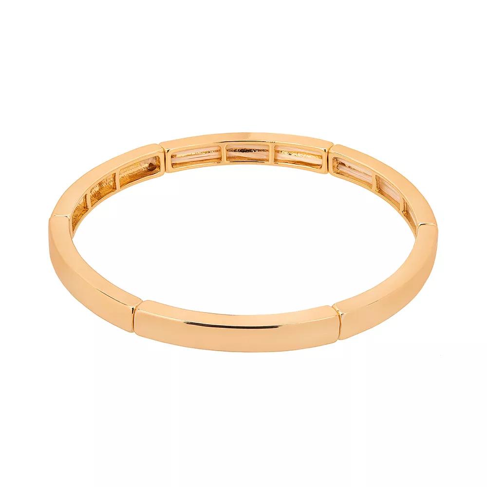 Give your accessories collection a classic refresh with this versatile gold tone stretch bangle bracelet from LC Lauren Conrad. Give your accessories collection a classic refresh with this versatile gold tone stretch bangle bracelet from LC Lauren Conrad. FEATURES Length: 6.5 in. Metal: zinc Plating: gold tone Finish: polished Nickel freeSUSTAINABILITY FEATURES 98% recycled zinc, 2% cubic zirconia Global Recycled Standard Certified Contains recycled materials Not appropriate for children 14 years old and younger. Size: One Size. Gender: female. Age Group: adult.