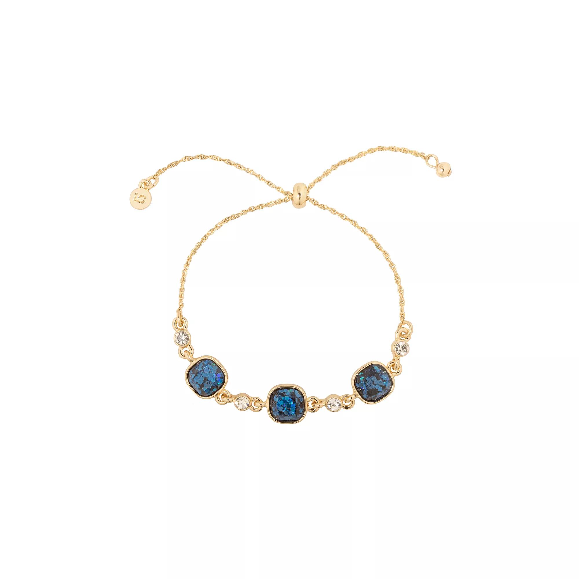 Accessorize in style with this LC Lauren Conrad gold tone emerald-cut pull-tie bracelet. Click on this JEWELRY & WATCHES GUIDE to learn about fit, styles, materials and more! Accessorize in style with this LC Lauren Conrad gold tone emerald-cut pull-tie bracelet. Click on this JEWELRY & WATCHES GUIDE to learn about fit, styles, materials and more! FEATURES Chain length: 10 in. Length: 10 in. Clasp: slider Nickel free Material: 60% recycled zinc, 25% plastic, 9% iron, 5% glass, 1% cubic zirconia Plating: gold tone Finish: polishedRESPONSIBLE Contains at least 50% recycled metal Not appropriate for children 14 years old and younger. Size: One Size. Color: Blue. Gender: female. Age Group: adult.
