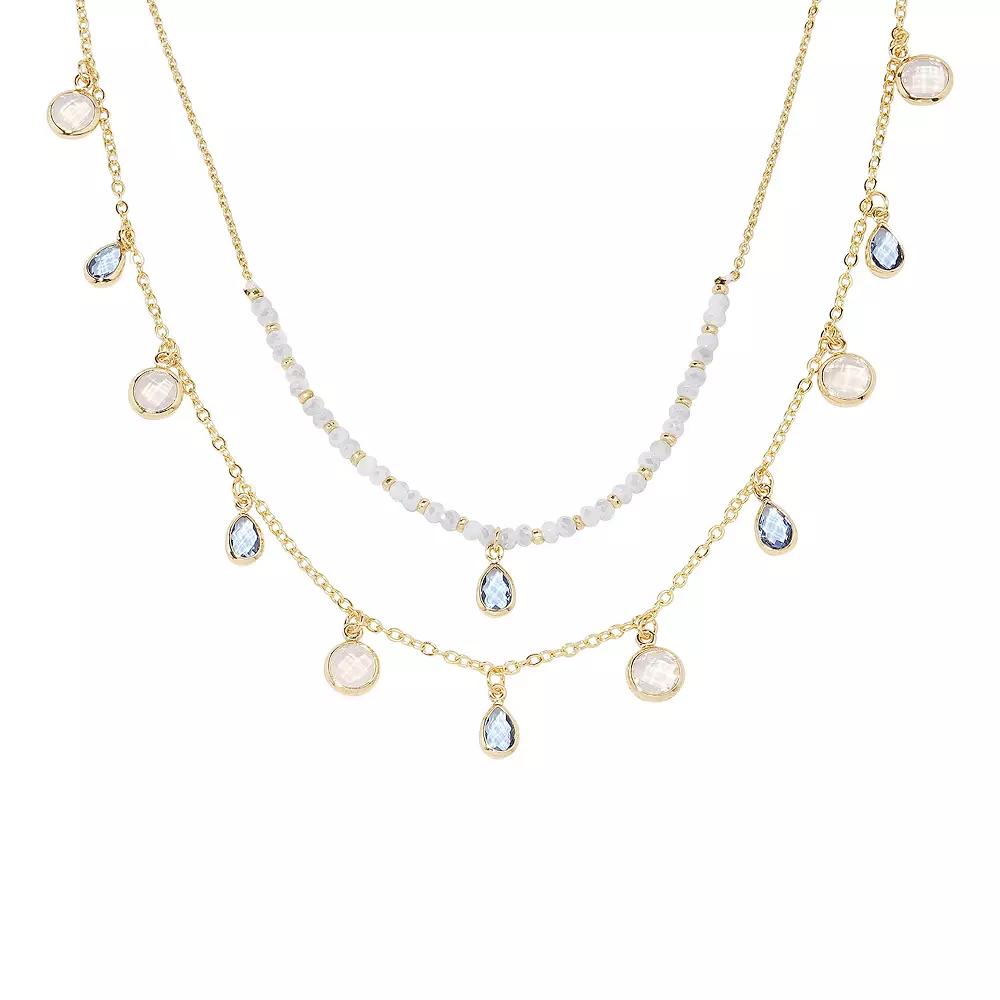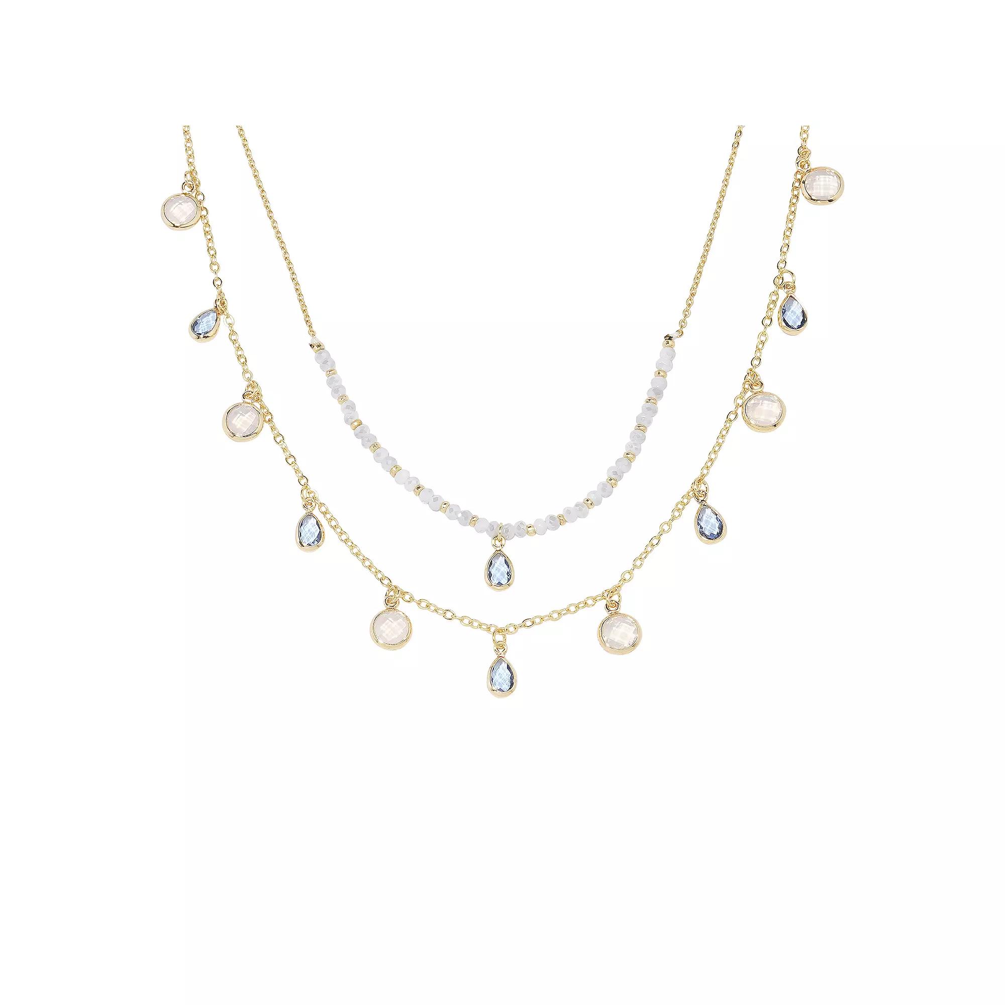 This gold tone charm necklace features white beads and a striking blue stone, blending elegance and modern style. A versatile piece that works well with any outfit. Click on this JEWELRY & WATCHES GUIDE to learn about fit, styles, materials and more! . This gold tone charm necklace features white beads and a striking blue stone, blending elegance and modern style. A versatile piece that works well with any outfit. Click on this JEWELRY & WATCHES GUIDE to learn about fit, styles, materials and more! . FEATURES Drop length: 0.25 in. Chain length: 16 in. - 18 in. Clasp: lobster-claw Nickel free Metal: brass Material: glass Plating: gold tone Finish: polishedRESPONSIBLE Contains at least 50% recycled metal Size: One Size. Gender: female. Age Group: adult.