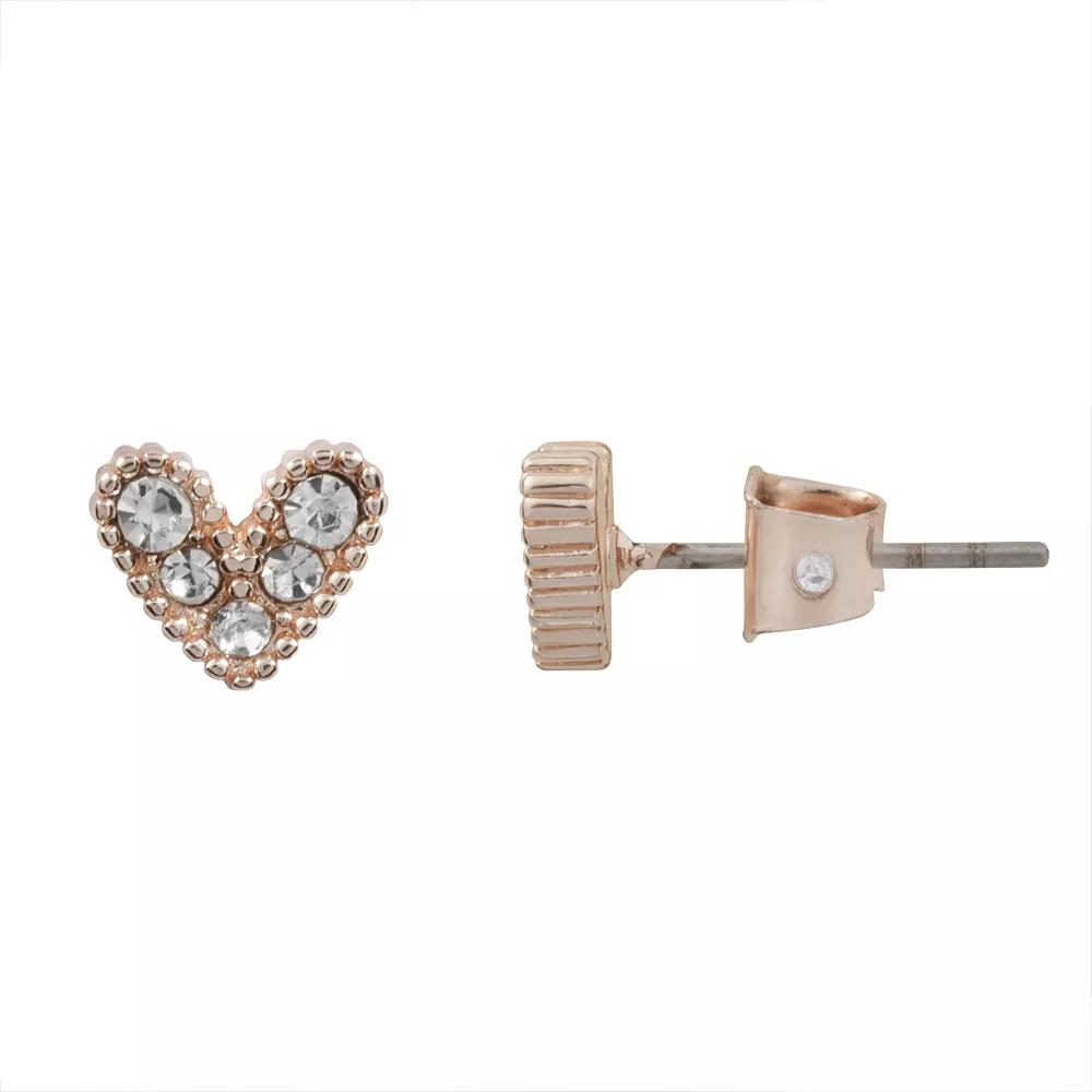 Complete your look with these dazzling, dainty heart earrings from LC Lauren Conrad. Complete your look with these dazzling, dainty heart earrings from LC Lauren Conrad. Diameter: 7 mm Backings: post Nickel free Material: brass Finish: polished Material: glass Not appropriate for children 14 years old and younger. Size: One Size. Color: Pink. Gender: female. Age Group: adult.
