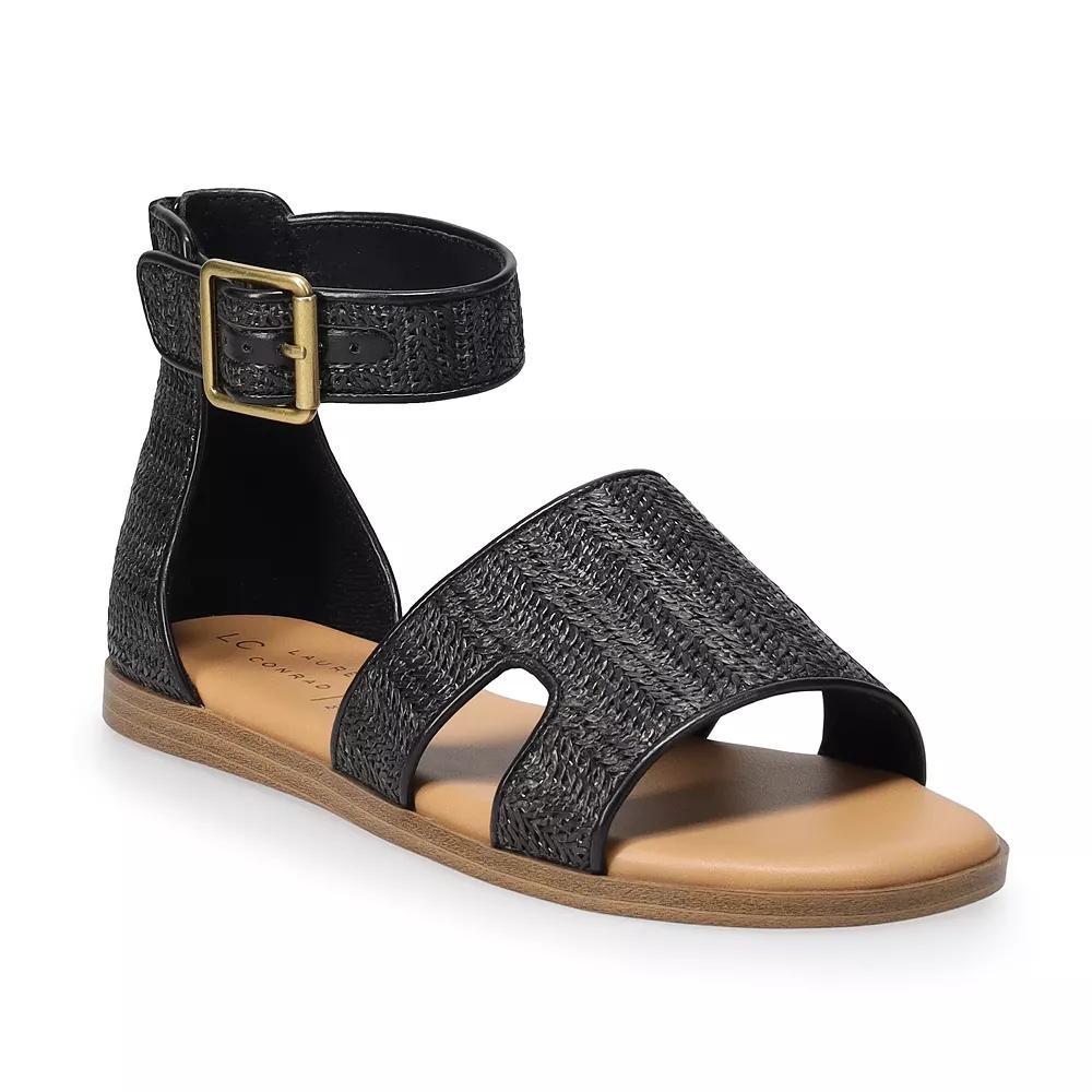 Elevate your casual outings with these LC Lauren Conrad Niviann Women's Sandals, thoughtfully designed with a sturdy heel counter for added support and style. Their chic aesthetic seamlessly transitions from day to night, making them an essential addition to your wardrobe.Click this FOOTWEAR GUIDE to find the perfect fit and more!Elevate your casual outings with these LC Lauren Conrad Niviann Women's Sandals, thoughtfully designed with a sturdy heel counter for added support and style. Their chic aesthetic seamlessly transitions from day to night, making them an essential addition to your wardrobe.Click this FOOTWEAR GUIDE to find the perfect fit and more!FEATURES Buckle closureDETAILS PP, Raffia upper PU lining TPR outsole Peep toe Buckle closure Polyurethane footbed Spot clean Imported Size: 10. Color: Black. Gender: female. Age Group: adult.