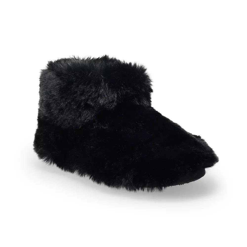 Get ready to step into cozy bliss with these stylish slip-ons that make your feet feel like they’re wrapped in a warm hug. Perfect for those lazy weekends or a quick run to the coffee shop, these boots blend comfort and chic effortlessly, ensuring you look fabulous while staying snuggly. How do you accessorize? Check out our ACCESSORIES GUIDE for essential tips to elevate your style with must-have accessories. - https://www.kohls.com/feature/accessories-guide.jsp. FEATURES: Boot style for added warmth and comfort. DETAILS: Slip-on closure, Foam sole, Round toe, Imported. MATERIAL & CARE: Faux fur upper, midsole and lining, TPR outsole, Foam footbed, Spot clean. Size: Large. Color: Black. Gender: female. Age Group: adult.
