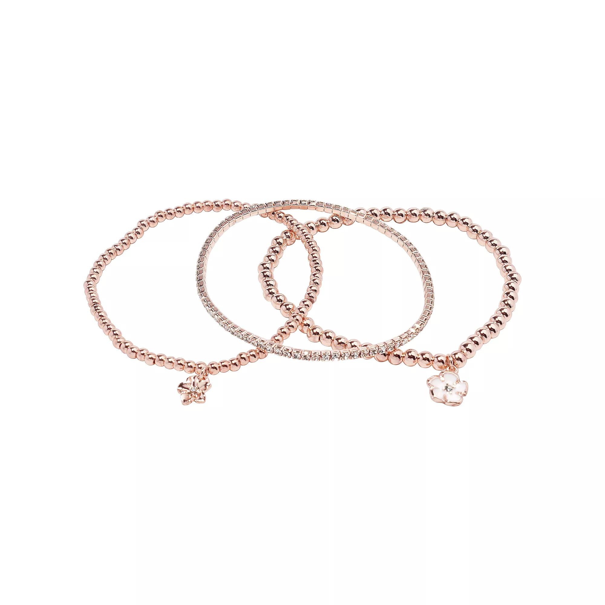 You'll love the stylish look of this LC Lauren Conrad Rose Gold Tone 3-Pack Flower Charms Bracelet Set. Click on this JEWELRY & WATCHES GUIDE to learn about fit, styles, materials and more! You'll love the stylish look of this LC Lauren Conrad Rose Gold Tone 3-Pack Flower Charms Bracelet Set. Click on this JEWELRY & WATCHES GUIDE to learn about fit, styles, materials and more! FEATURES Length: 6.25 in. Clasp: adjustable Nickel free Metal: brass Material: acrylic, glass, resin Plating: rose gold tone Finish: polished Imported Size: One Size. Color: White. Gender: female. Age Group: adult.