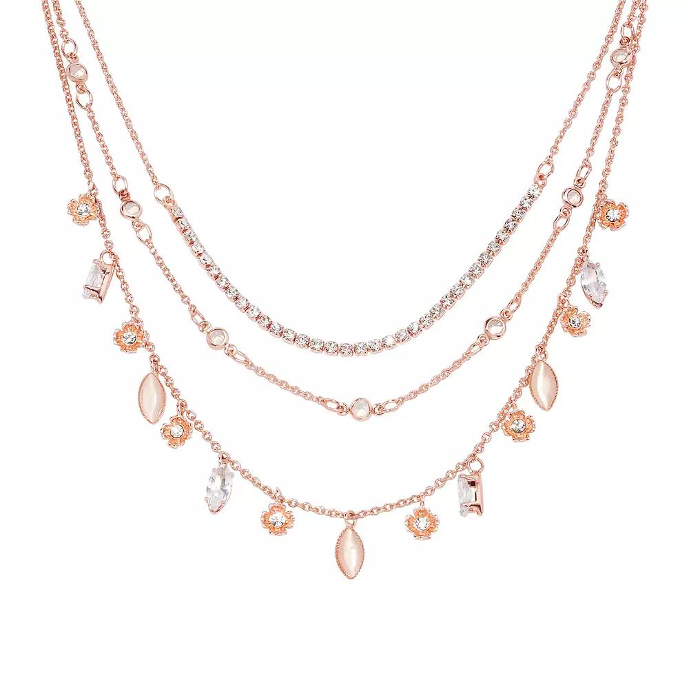 Give your jewelry box a refresh with this crystal-embellished rose gold tone triple strand necklace from LC Lauren Conrad. Click on this JEWELRY & WATCHES GUIDE to learn about fit, styles, materials and more! Give your jewelry box a refresh with this crystal-embellished rose gold tone triple strand necklace from LC Lauren Conrad. Click on this JEWELRY & WATCHES GUIDE to learn about fit, styles, materials and more! FEATURES Chain length: 16 - 18 in. Clasp: lobster-claw Nickel free Metal: brass Material: glass Plating: rose gold tone Finish: polished Imported Not appropriate for children 14 years old and younger. Size: One Size. Color: Multi. Gender: female. Age Group: adult.
