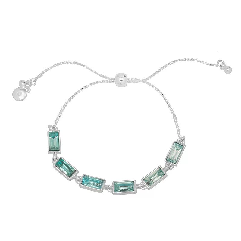 Make a fashion statement with this LC Lauren Conrad Silver Tone Baguette Stone Adjustable Bracelet. Click on this JEWELRY & WATCHES GUIDE to learn about fit, styles, materials and more! Make a fashion statement with this LC Lauren Conrad Silver Tone Baguette Stone Adjustable Bracelet. Click on this JEWELRY & WATCHES GUIDE to learn about fit, styles, materials and more! FEATURES Length: 10 in. Clasp: slider Nickel free Metal: brass, steel, zinc Material: acrylic, glass Plating: silver tone Finish: polished Imported Not appropriate for children 14 years old and younger. Size: One Size. Color: Blue. Gender: female. Age Group: adult.