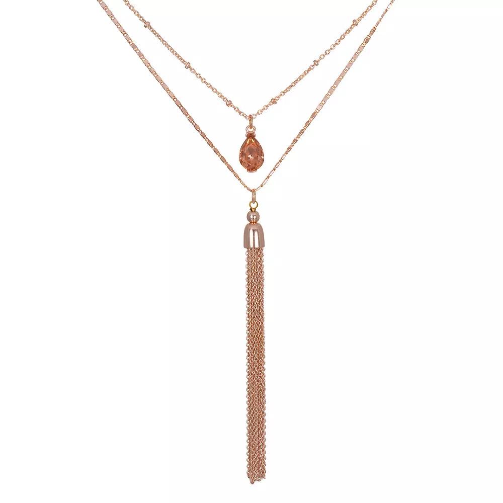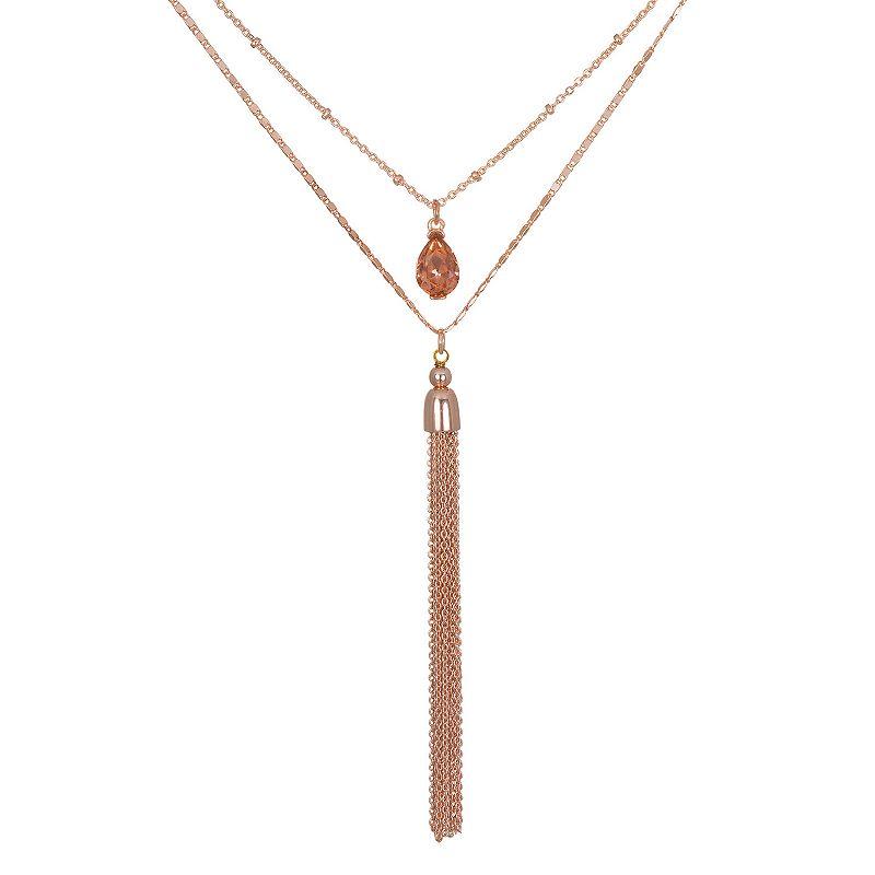 Add a sparkling touch to your look with this stunning simulated crystal and fringe necklace from LC Lauren Conrad. Add a sparkling touch to your look with this stunning simulated crystal and fringe necklace from LC Lauren Conrad. NECKLACE DETAILS Pendant length: 2.6 in. Chain length: 24 in. with 3 in. extender Clasp: lobster claw Metal: brass, iron, zinc alloy Plating: rose gold tone Finish: polished Additional details: nickel free Not appropriate for children 14 years old and younger. Size: One Size. Color: Multicolor. Gender: female. Age Group: adult.
