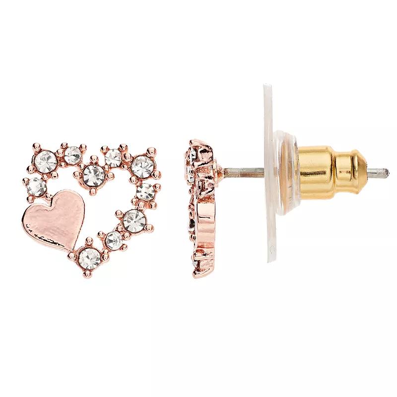 Youll love the look of these open heart button earrings from LC Lauren Conrad. EARRING DETAILS 9 MM Post Brass Polished Glass Nickel free Not appropriate for children 14 years old and younger. Size: One Size. Color: Pink. Gender: female. Age Group: adult.