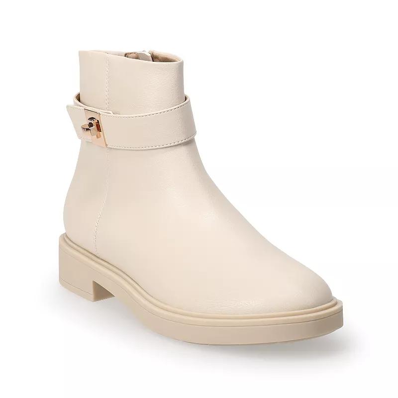 Add style and sharpness to your footwear arsenal with these LC Lauren Conrad Tahira Belted Womens Boots.Click this FOOTWEAR GUIDE to find the perfect fit and more! Add style and sharpness to your footwear arsenal with these LC Lauren Conrad Tahira Belted Womens Boots. Click this FOOTWEAR GUIDE to find the perfect fit and more! BOOT CONSTRUCTION Upper: PU Lining: Jersey TPR outsole Round toeBOOT DETAILS Buckle closure Polyurethane footbed 1.26-in heel Spot clean Imported Size: 7.5. Color: Bone. Gender: female. Age Group: adult.