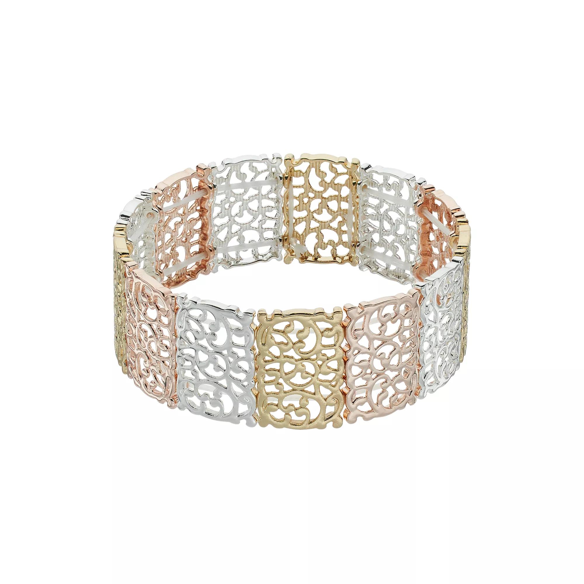 This filigree stretch bracelet from LC Lauren Conrad provides ornate beauty.BRACELET DETAILS Length: 7.75 in. Metal: zinc alloy Plating: silver tone, gold tone, rose gold tone Additional details: nickel free Not appropriate for children 14 years old...