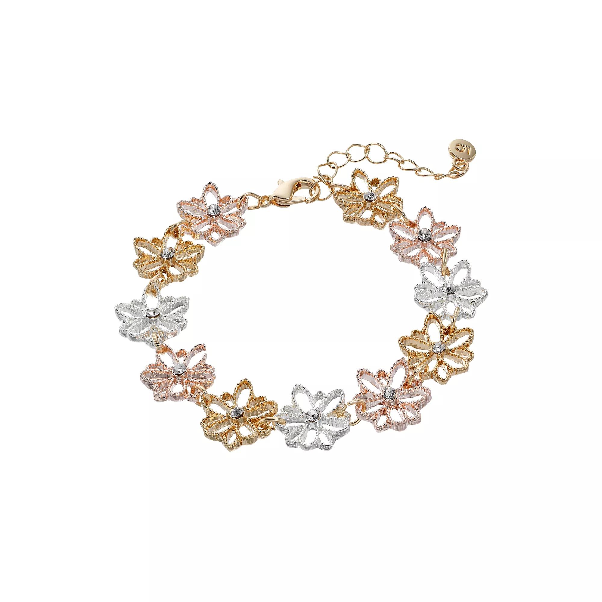 Textured floral links complete the sweet and sparkling design of this LC Lauren Conrad tri-tone bracelet.BRACELET DETAILS Length: 6.5 in. with 1.5-in. extender Clasp: lobster-claw Plating: gold tone, rose gold tone & silver tone Finish: textured Not appropriate for children 14 years old and younger. Size: One Size. Color: Multicolor. Gender: female. Age Group: adult.