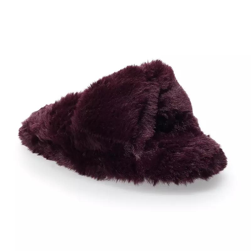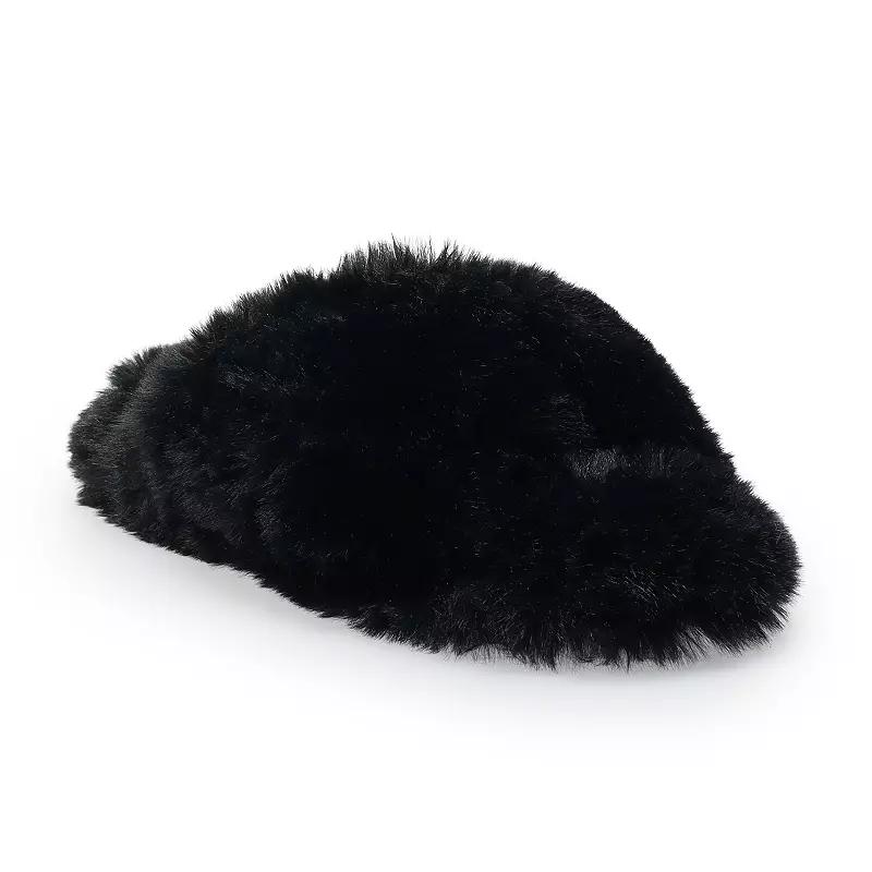 Step into pure comfort with these irresistibly cozy faux fur slide slippers that are perfect for lounging at home or running quick errands. Designed with a chic twist band detail, they add a touch of style to your relaxation moments, making you feel like a star even in your comfiest hours. How do you accessorize? Check out our ACCESSORIES GUIDE for essential tips to elevate your style with must-have accessories. - https://www.kohls.com/feature/accessories-guide.jsp. FEATURES: Slipper design for comfort. DETAILS: Slip-on closure, Foam sole, Open toe, Imported. MATERIAL & CARE: Faux fur upper, midsole and lining, Foam footbed, Spot clean. Size: Xxl. Color: Black. Gender: female. Age Group: adult.