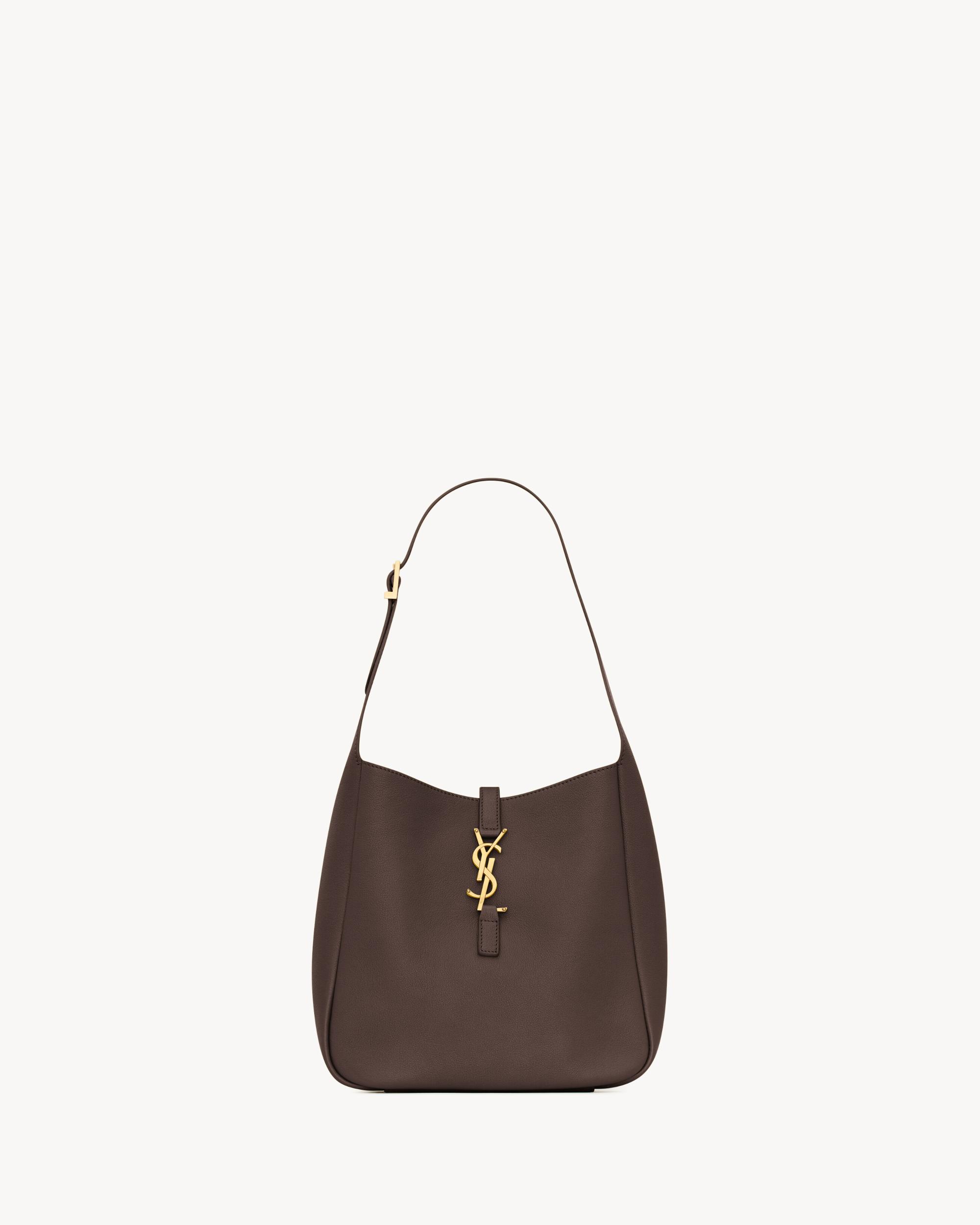 The supple version of the iconic LE 5 À 7, in finely grained leather lined in tonal suede.This spacious bag features a removable zip pouch and leather tab closure decorated with the CASSANDRE. An adjustable strap allows for bespoke shoulder carry.