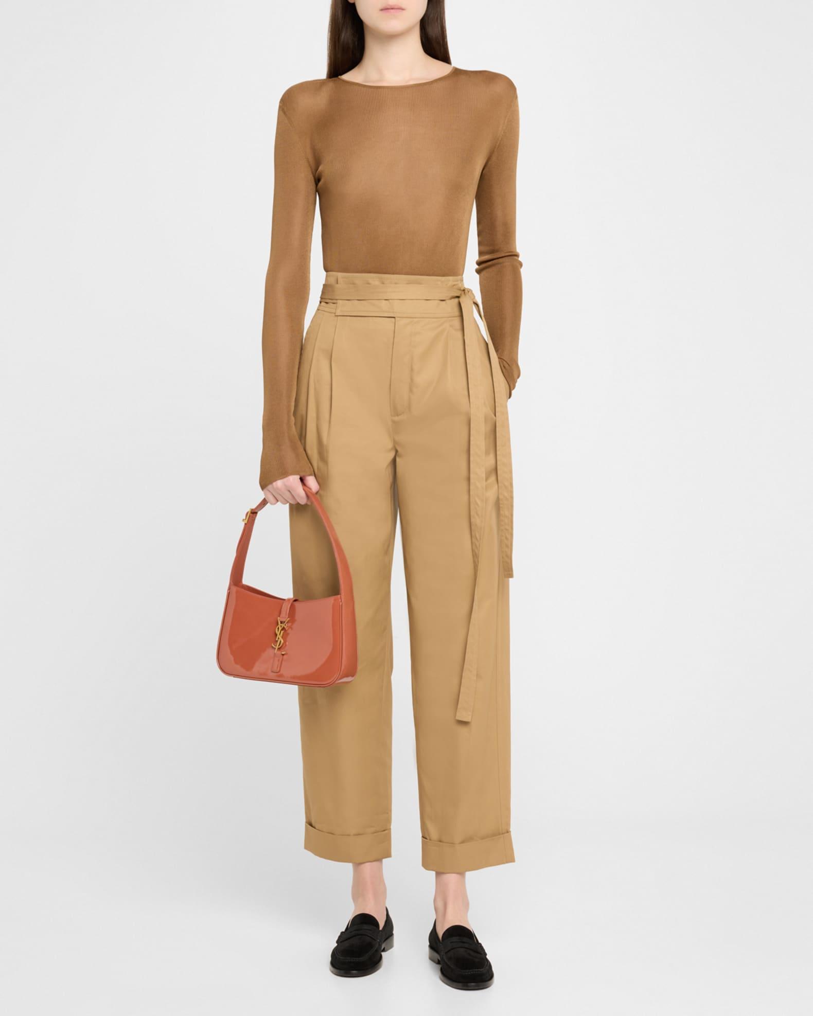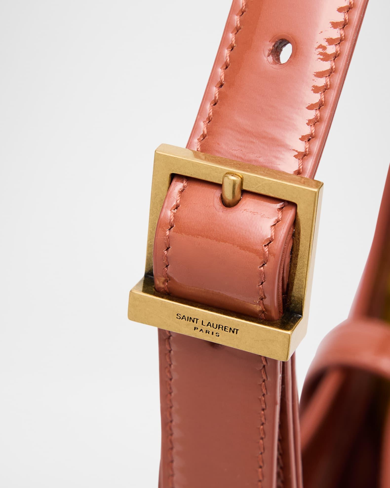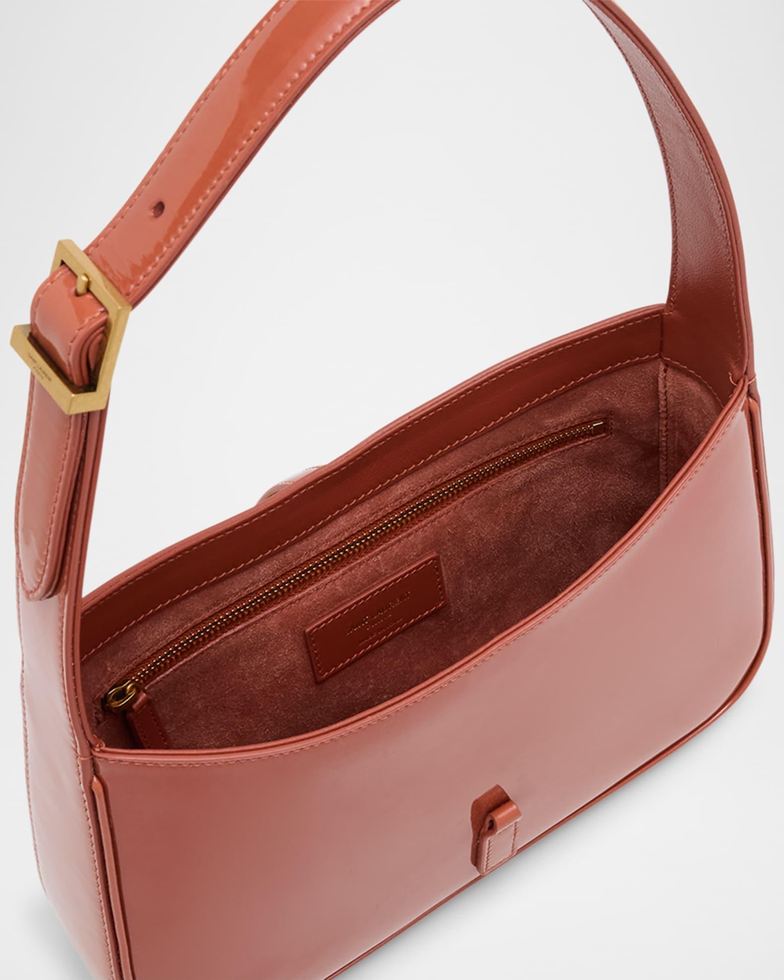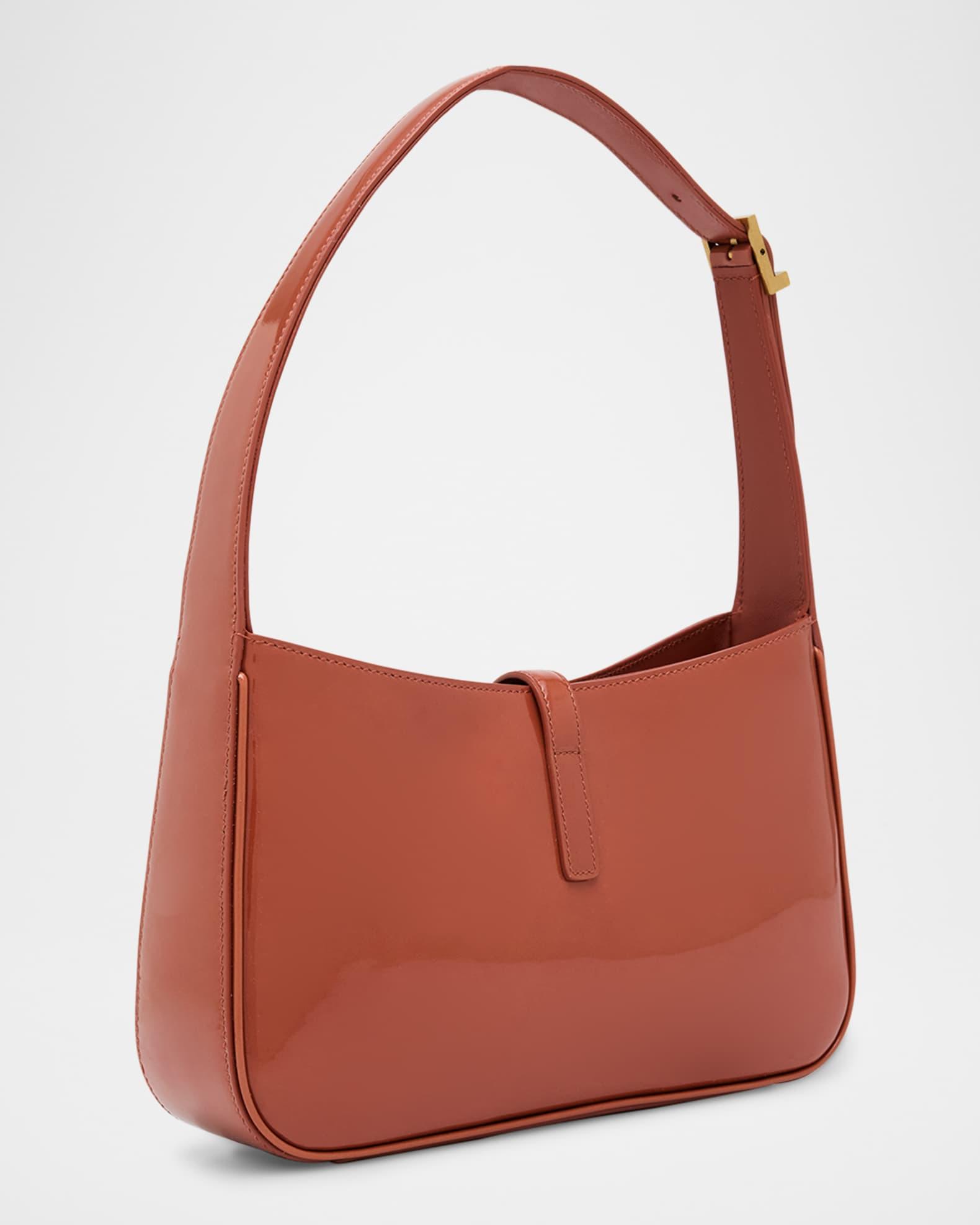 Saint Laurent's "Le 5 À 7" shoulder bag, crafted in glossy patent calf leather, effortlessly blends contemporary charm with refined luxury. Adjustable shoulder strap Center flap top with YSL logo, tab closure Interior, zip pocket Light bronze hardware Approx. 6.2"H x 9"W x 2.5"D Made in Italy Proposition 65 warning for California residents