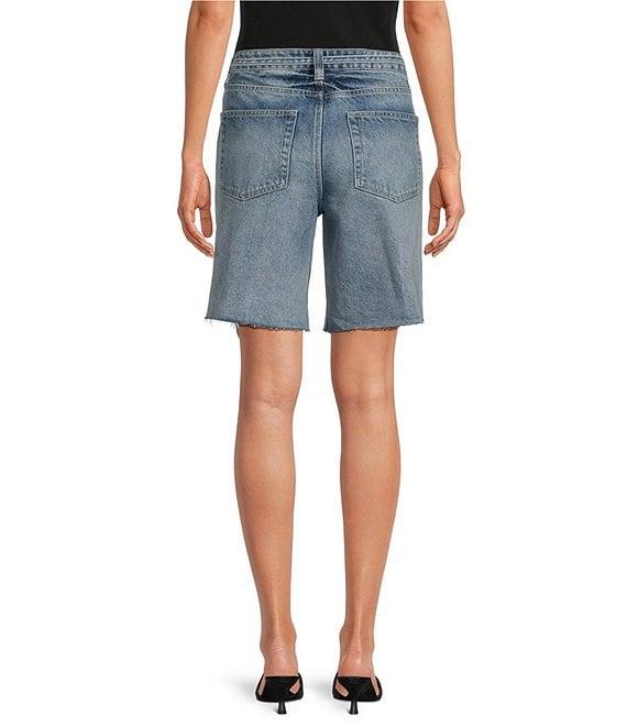 From Le' AL.X, these jean shorts feature: Woven denim fabrication Vintage wash look Mid rise waistline Denim tie belt closure Front button with zipper closure Pull on construction Functional front coin pocket Functional front quarter top pockets Functional back patch pockets Bermuda short silhouette Relaxed & oversized fit Distressed details at hemline Straight hemline Mid length short Approx. 8.875" inseam Cotton Machine wash on cold normal cycle, wash with other denim fabrications, tumble dry on low cycle, use cool iron if needed. Imported. Dillard's Exclusive Le' AL.X explores meticulous design that speaks to a minimalist aesthetic, creating an elevated casual collection. A vision conceived from the idea of refined pieces, the brand blends timeless styles with progressive contemporary silhouettes, featuring subtle detailing and exceptional fabrics. Le' AL.X embodies the appeal of a modern uniform, offering an ever-evolving wardrobe.