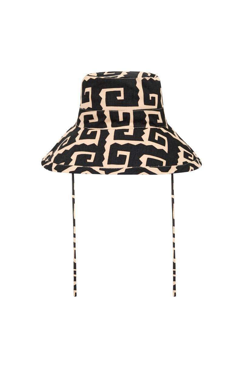 Lift any summer look with the Le Bas Sun Hat in Playa Minizo. A wide-brimmed bucket hat, cut from cotton canvas and lovingly hand-printed with a retro island motif all over. Style it with the matching Abaya Pareo for a playful poolside look.