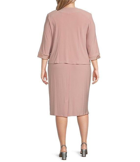 From Le Bos Plus, this jacket dress features: Jacket: ITY fabrication Open front neckline 3/4 sleeves Embroidered Open front; no closure Approx. 25.5" in length Polyester/spandex Hand wash Dress: ITY fabrication Crew neckline Sleeveless Embroidered Pullover closure Approx. 44.5" in length Polyester/spandex Hand wash Imported.