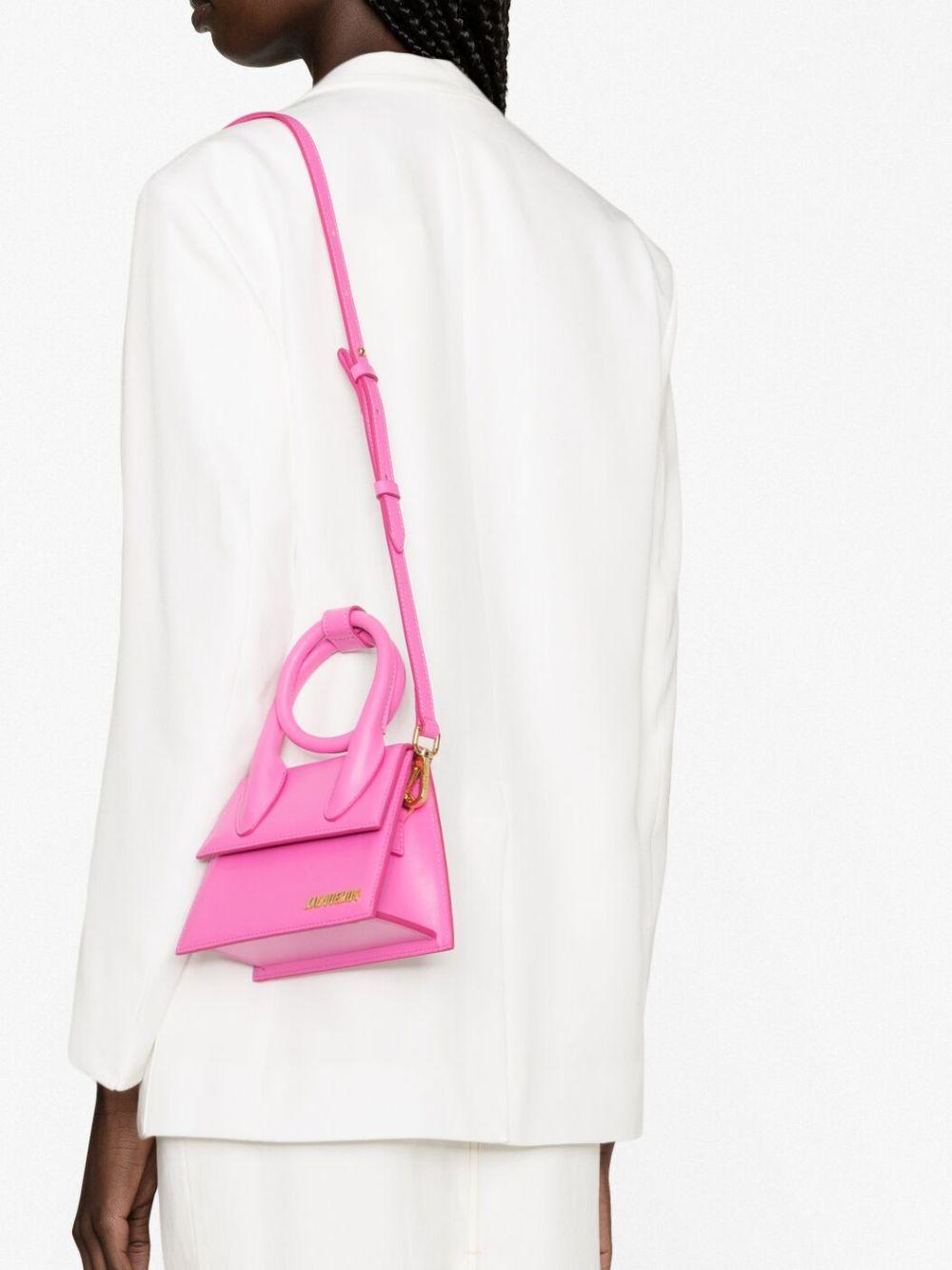 Jacquemus Le Chiquito Noeud tote bag | Pink | hot pink | calf leather | smooth grain | gold-tone logo lettering | foldover top with magnetic fastening | single circular top handle | adjustable detachable shoulder strap | main compartment | cotton lining | internal logo patch | internal slip pocket | Calf Leather | Tote Bags | Bags | Women