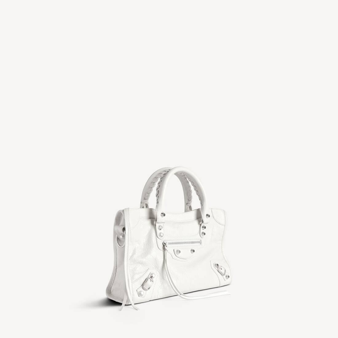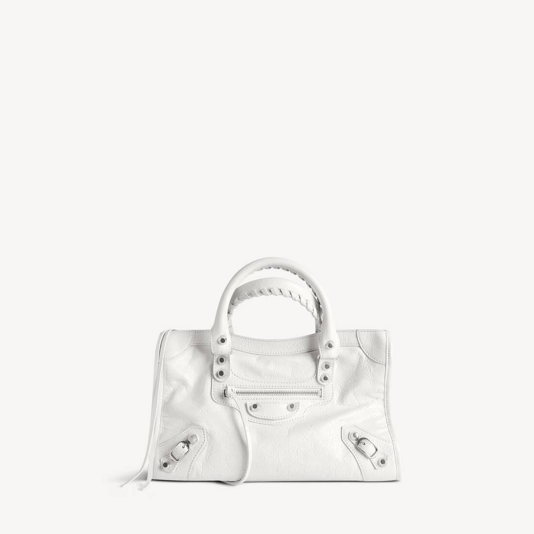 Le City Bag Small in white Arena lambskin, shiny silver hardware