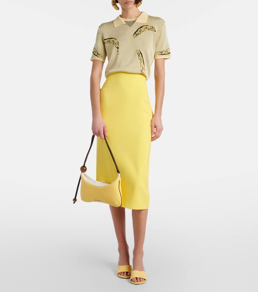 Shop Jacquemus Le Grand Bisou Perle Yellow Shoulder Bag With Adjustable Shoulder Strap And Front Logo In Leather Wo from 800+ stores, starting at $578. JACQUEMUS Le Grand Bisou Perle in Yellow Smooth and croc-embossed lamb leather exterior with twill lining. Made in Italy. Top zipper closure. One main compartment with single flat pocket. JACQUEMUS logo hardware at front. Adjustable shoulder strap. Wooden spheres at shoulder strap. Measures approx 11.81 W x 4.53 H x 2.36 D Adjustable shoulder strap with a 13 drop. JQUF-WY405. 251BA410-3171. About the designer: At only 19 years of age, Parisian designer Simon Porte Jacquemus birthed his eponymous label to pay homage to his mother. Since then, the brand has been showcasing womenswear with a child-like spirit and a simplistic freedom. JACQUEMUS is confidently experimental yet refined with every asymmetrical, deconstructed, and oversized masterpiece.