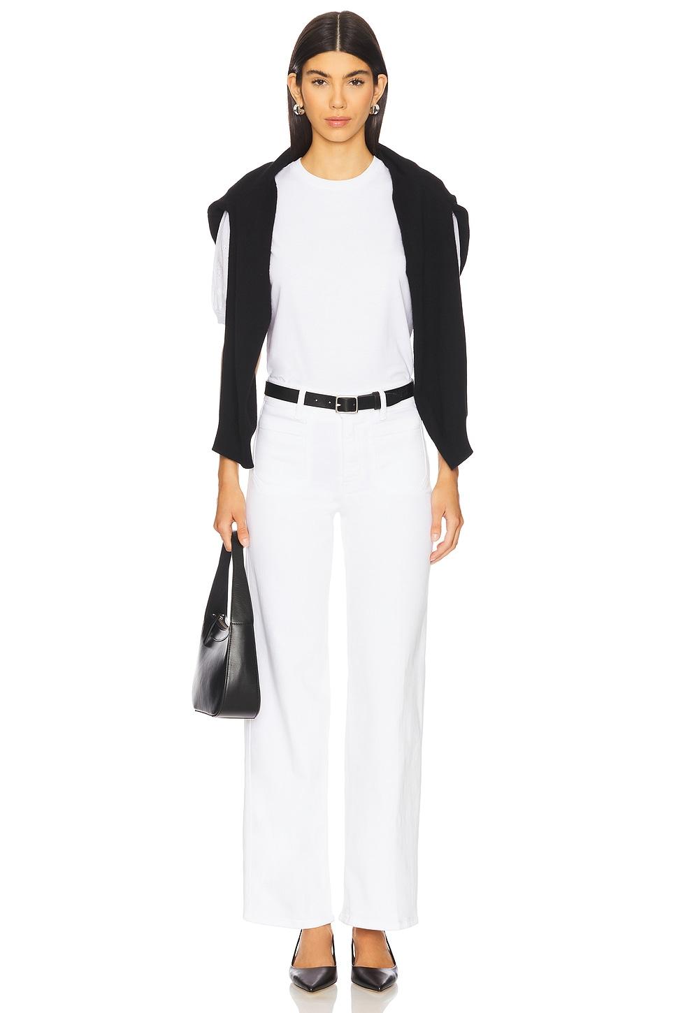 57% regenerative cotton, 38% rayon, 3% elasterell-p, 2% elastane. made in Tunisia. Machine wash. Zip fly with button closure. 4-pocket styling. Midweight denim fabric. 18" at the knee breaks to 18.5" at the leg opening. Revolve Style No. FAME-WJ418. Manufacturer Style No. LSPIP238.