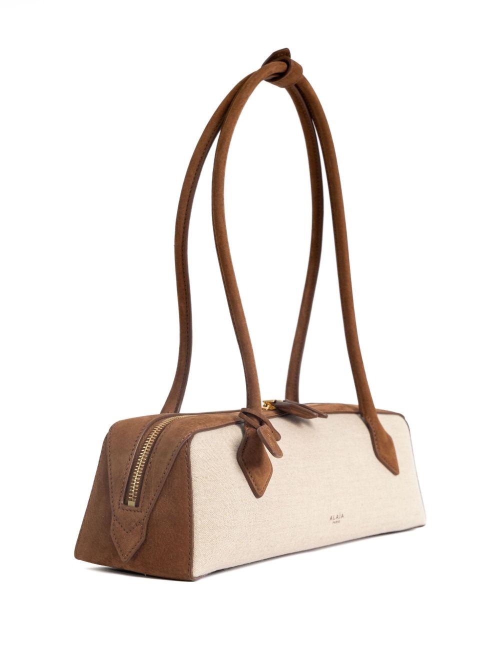 Le Teckel suede-trimmed canvas-nubuck shoulder bag