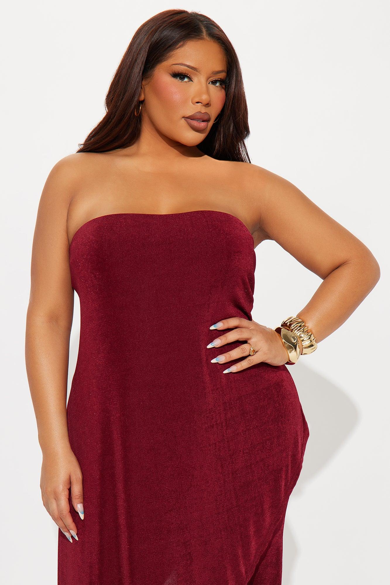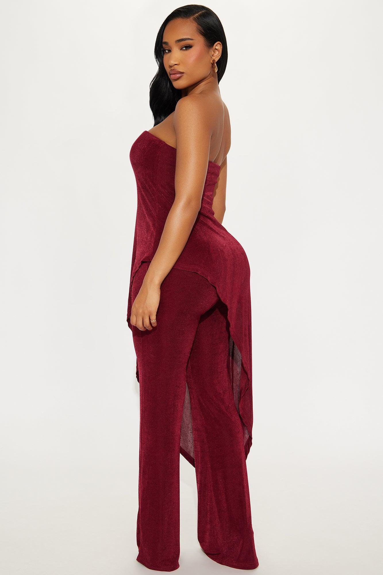 Available In Olive, Wine, And Orange. Long Tube Top And Flare Pant Set Stretch Tube Top Asymmetrical Regular 34" Inseam Elastic Waistband Top Self: 95% Polyster 5% Spandex Top Lining: 100% Polyester Pant Self: 95% Polyster 5% Spandex Imported