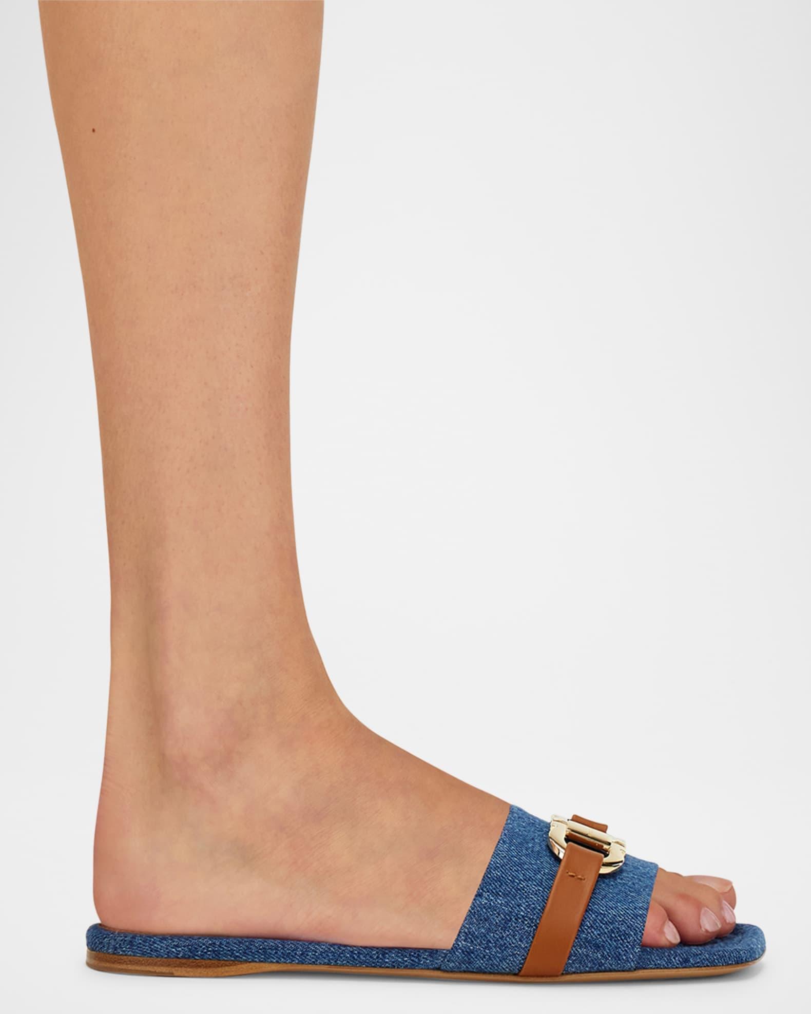 Leah Gancini Bit Denim Slide Sandals