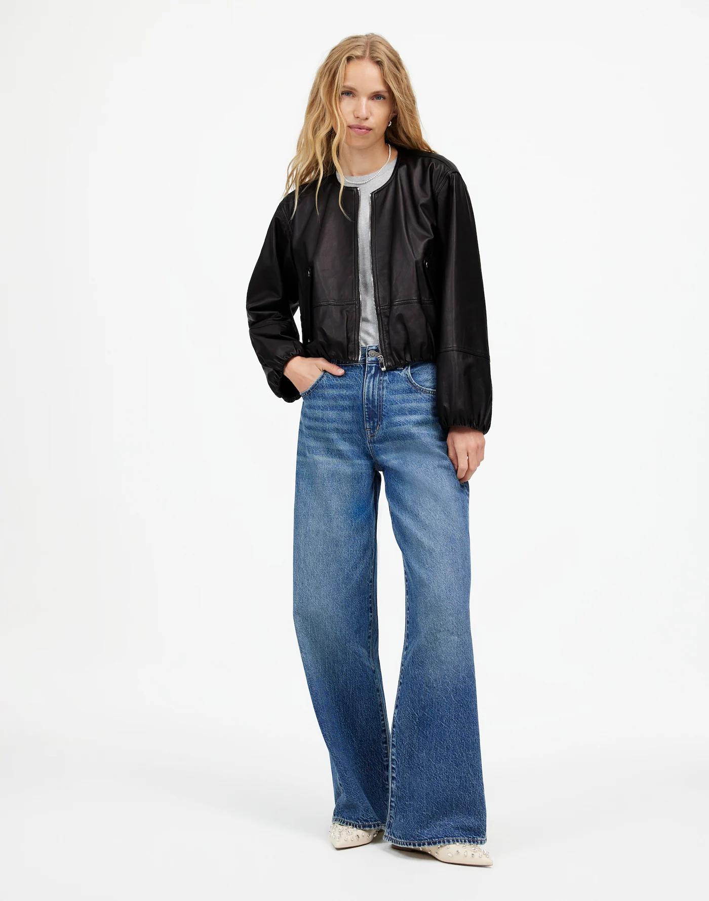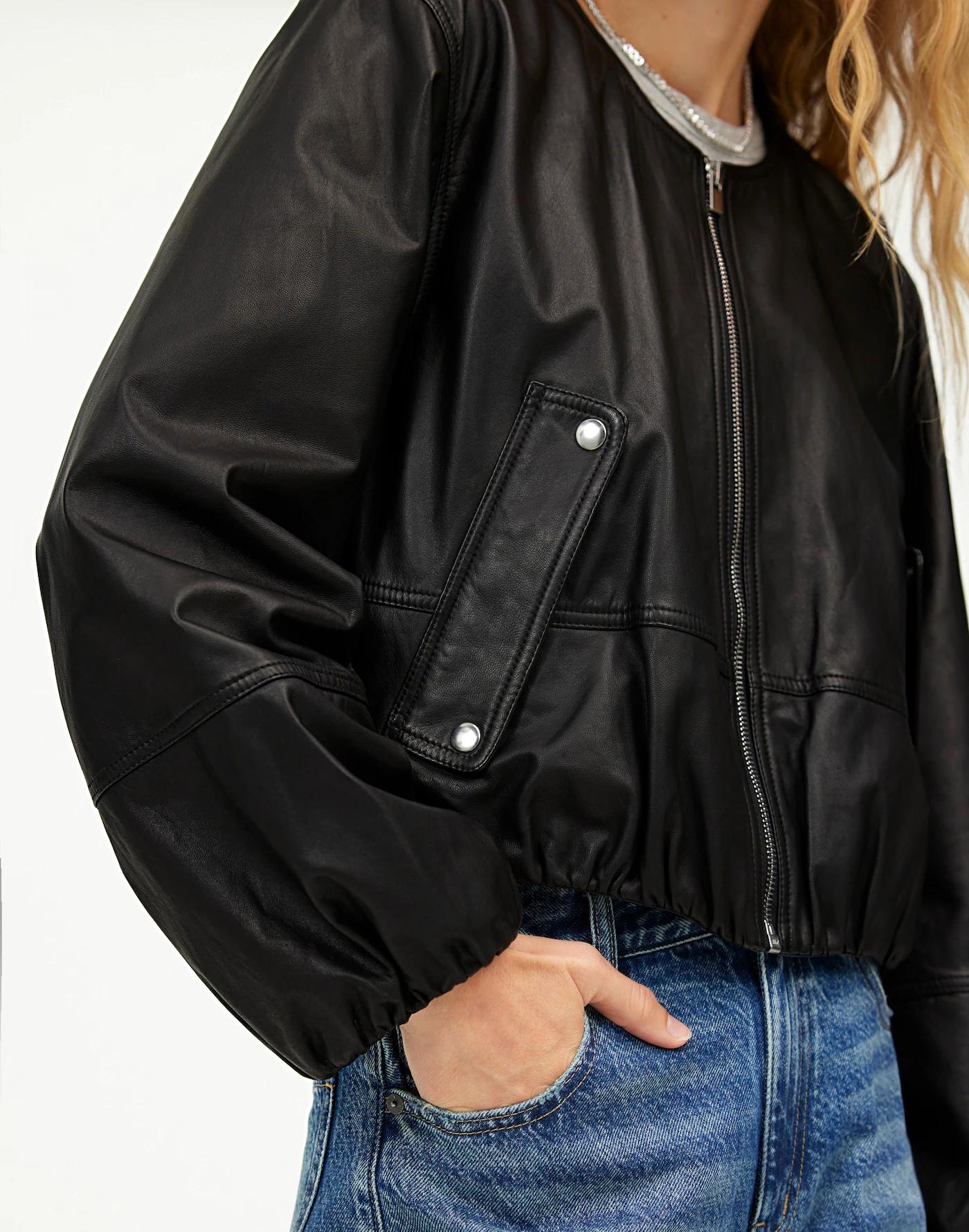 Leather Bubble-Sleeve Jacket