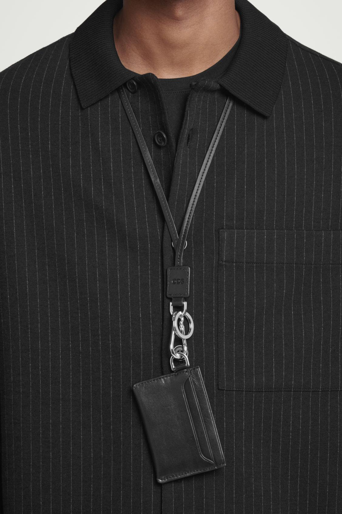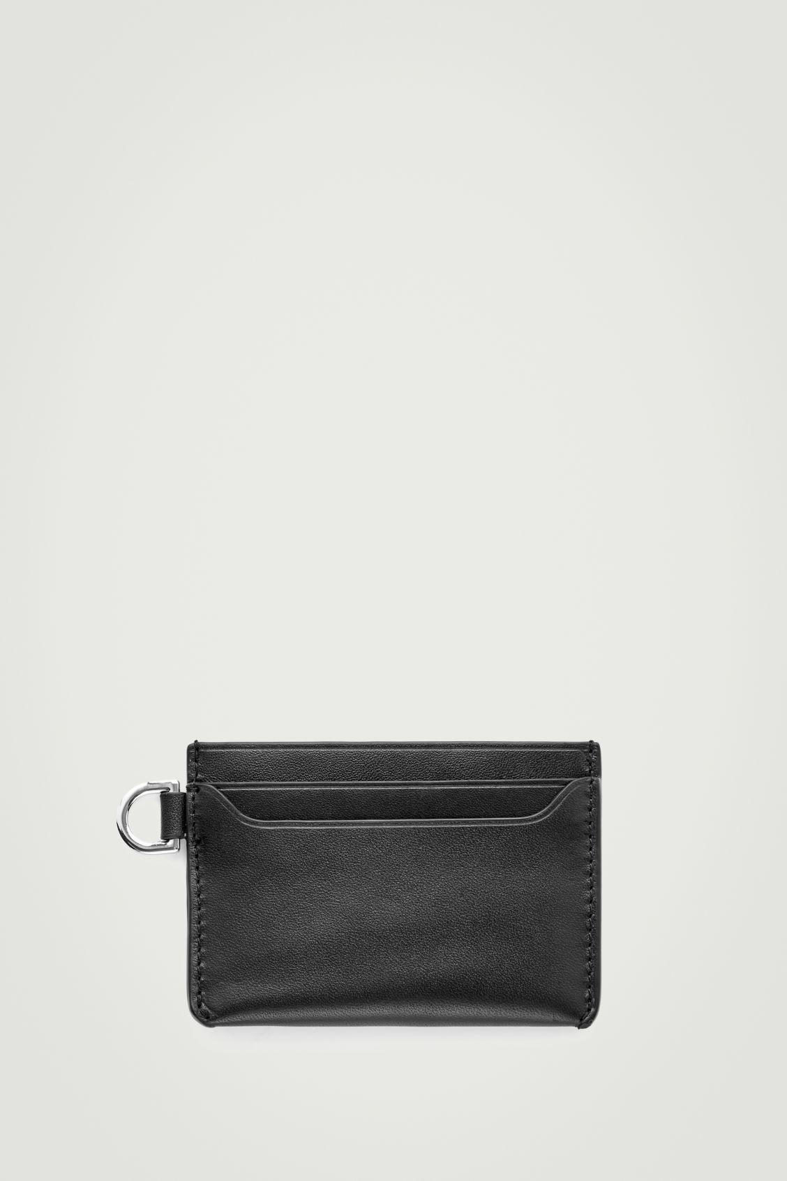 The menswear team have developed a series of modular accessories that work in conjunction with other styles. This cardholder is designed with several slots and a D-ring that'll attach to a lanyard or carabiner clip. It's crafted from scratch-resistant leather and debossed with a COS logo for a signature finish. COS supports responsible manufacturing via the Leather Working Group Shell: 100% Leather. Lining: 100% Cotton. Excluding trims Height: 2.75", Width: 3.93"