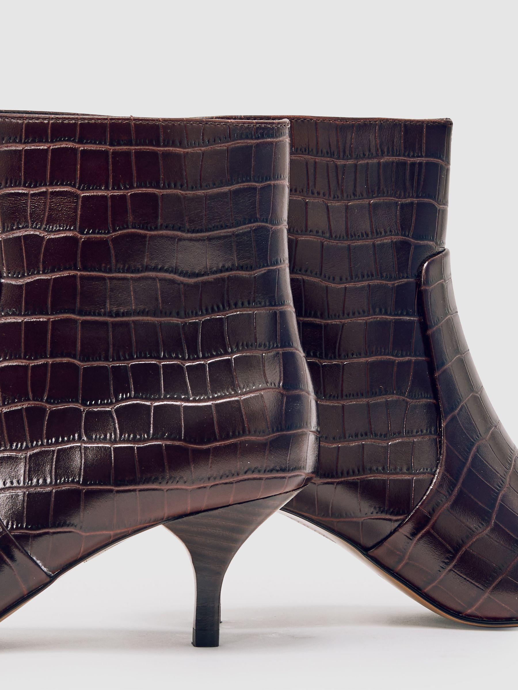 Shop for Reiss Leather Crocodile-Effect Ankle Boots in Burgundy online at REISS USA