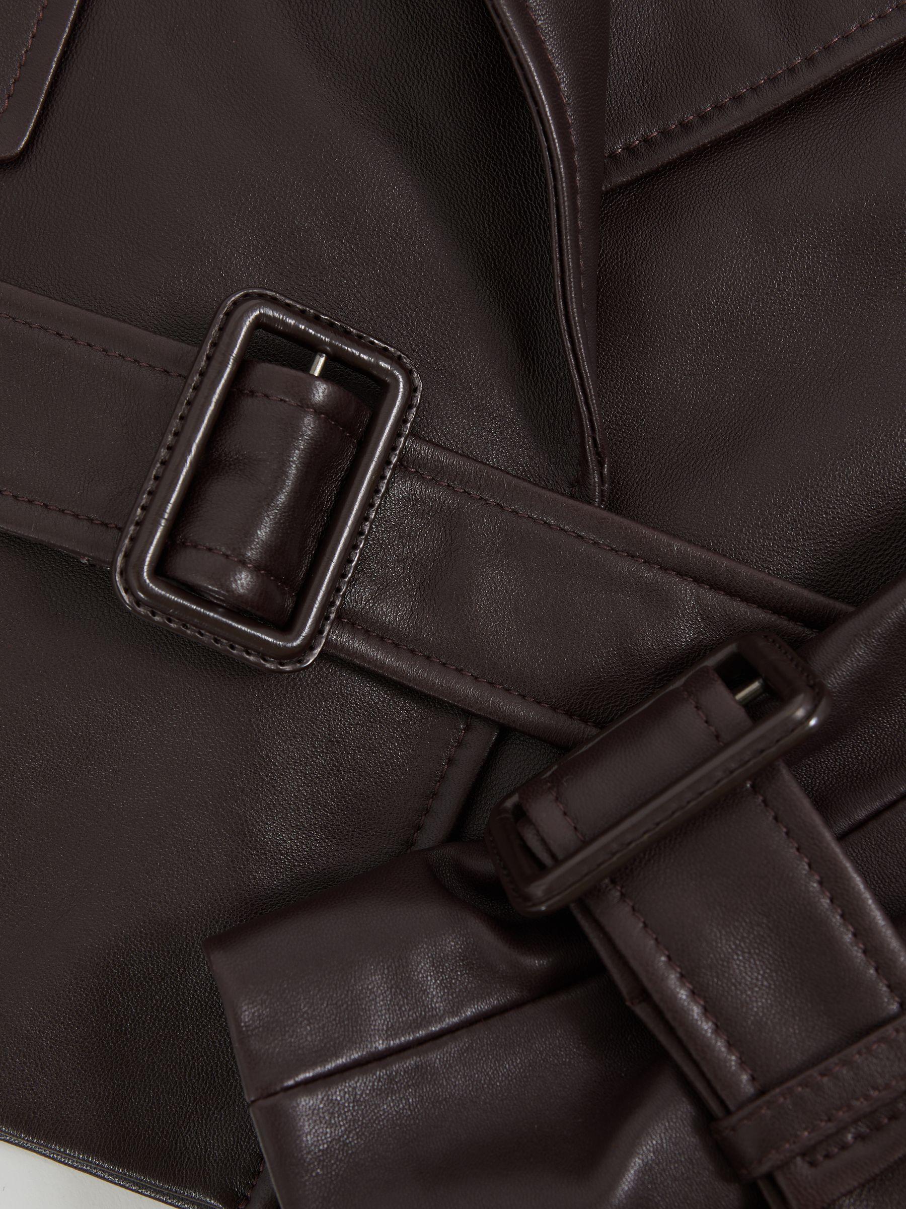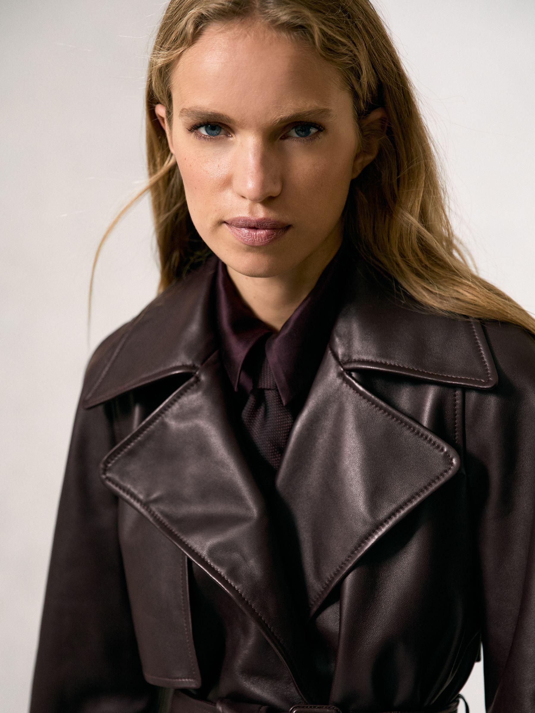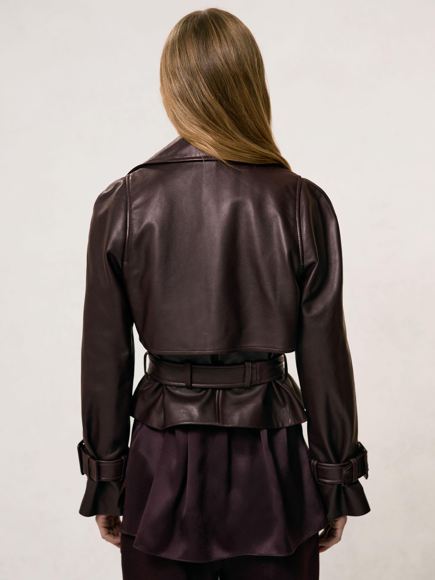 Crafted from butter-soft leather and cut to a cropped silhouette, the Bodie jacket gives the classic trench a contemporary update. It retains it's heritage appeal through wide lapels, a storm flap, and belted waist and cuffs, reinterpreted with a clean, modern finish. 100% leather. Double-breasted. Storm flap. Notch lapels. Belted waist and cuffs Lined.