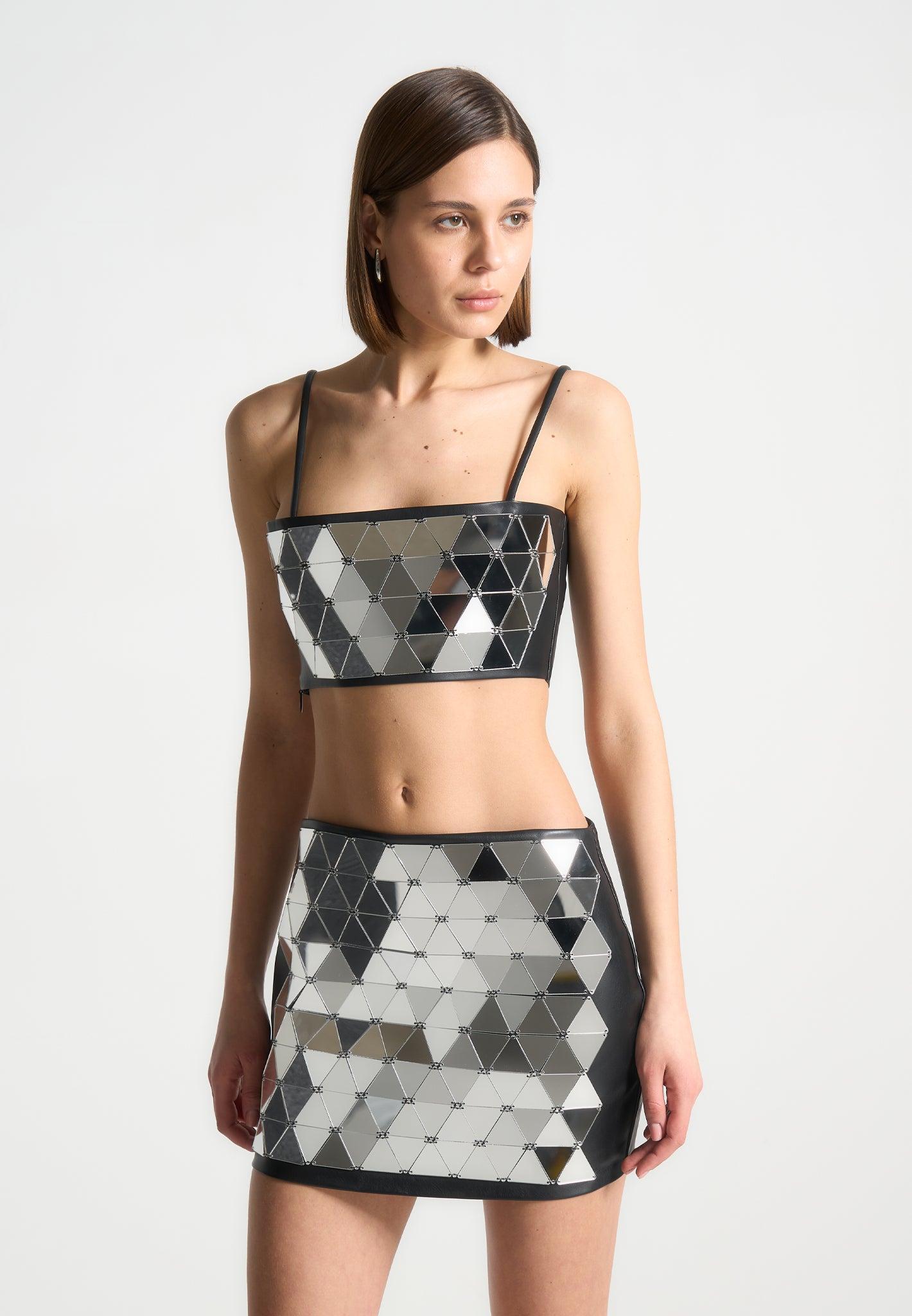 Leather Mirrored Bandeau Top - Silver/Black Female