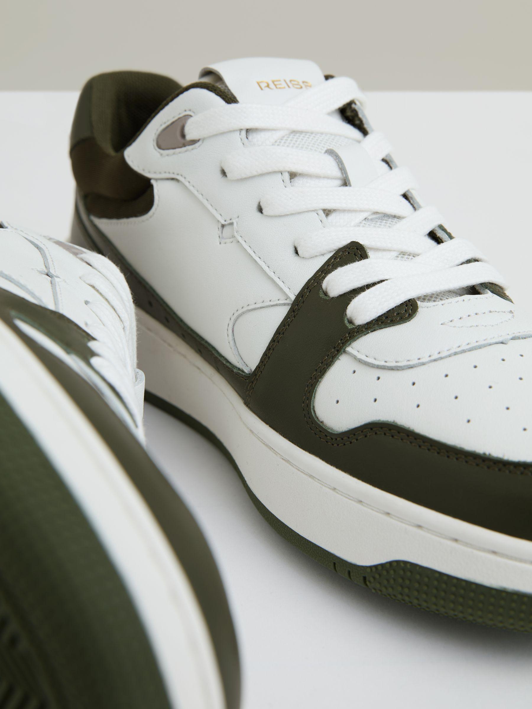 The Astor trainers are crafted from leather in a chunky, retro-inspired silhouette. Colour-blocked panels and subtle branding at the heel and tongue add a refined, modern touch. Leather panels. Perforated upper. Branded heel counter and tongue. Lace-up fastening. Rubber sole.