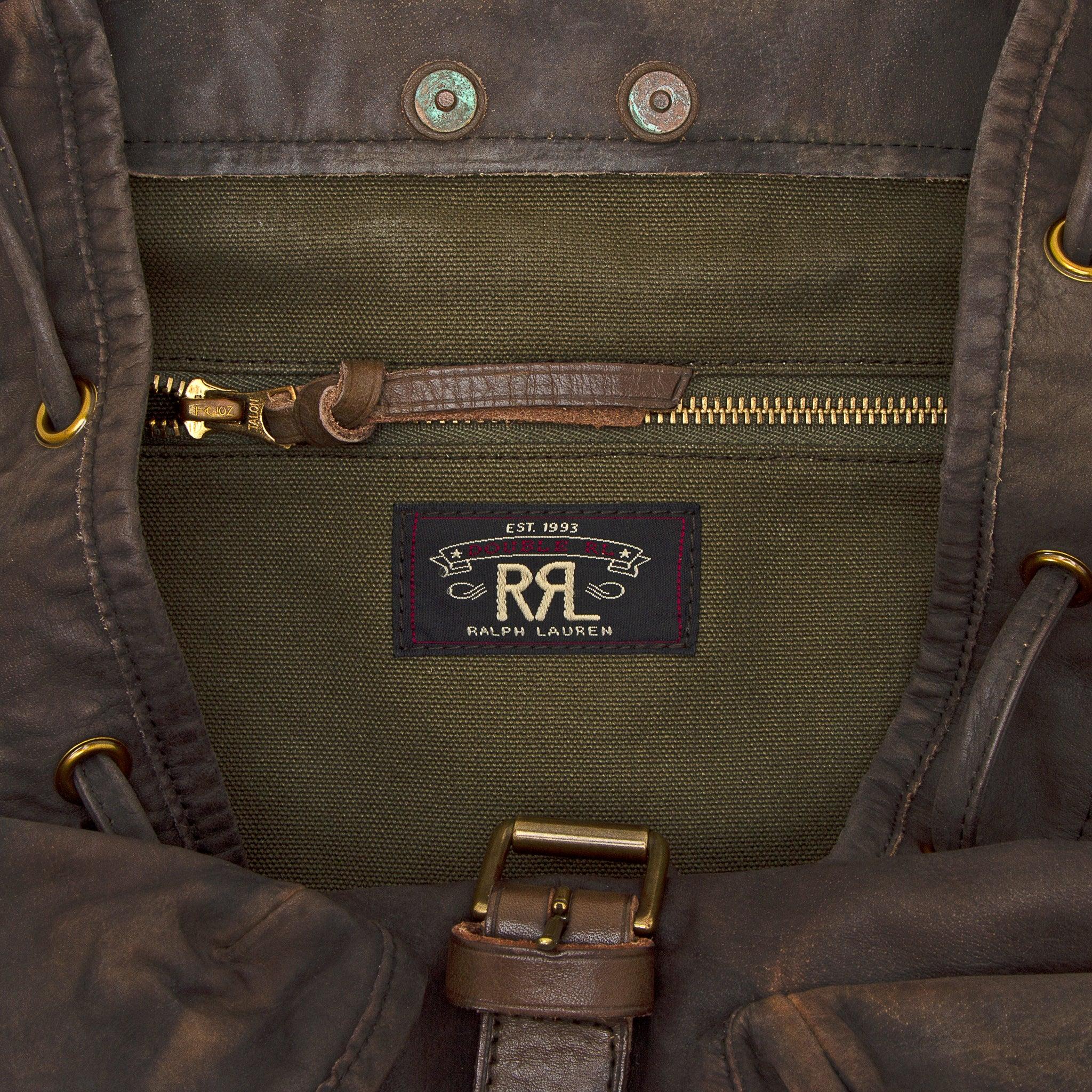 An iconic rucksack model made from lightweight, supple buffalo hide that’s been treated with a black over brown overdye and has been specially hand-finished for a timeworn look. It’s detailed with vegetable-tanned cow leather trim, brass hardware, and distressed copper-tone rivets. Adjustable leather shoulder straps. Fold-over flap with a buckled closure Brass hardware Leather drawcord Two front snapped pockets Unlined finish Reinforced base Distressed copper-tone rivets Materials: 100% buffalo hide, cow leather trim Dimensions: 16¾” H x 14" W x 6½" D.